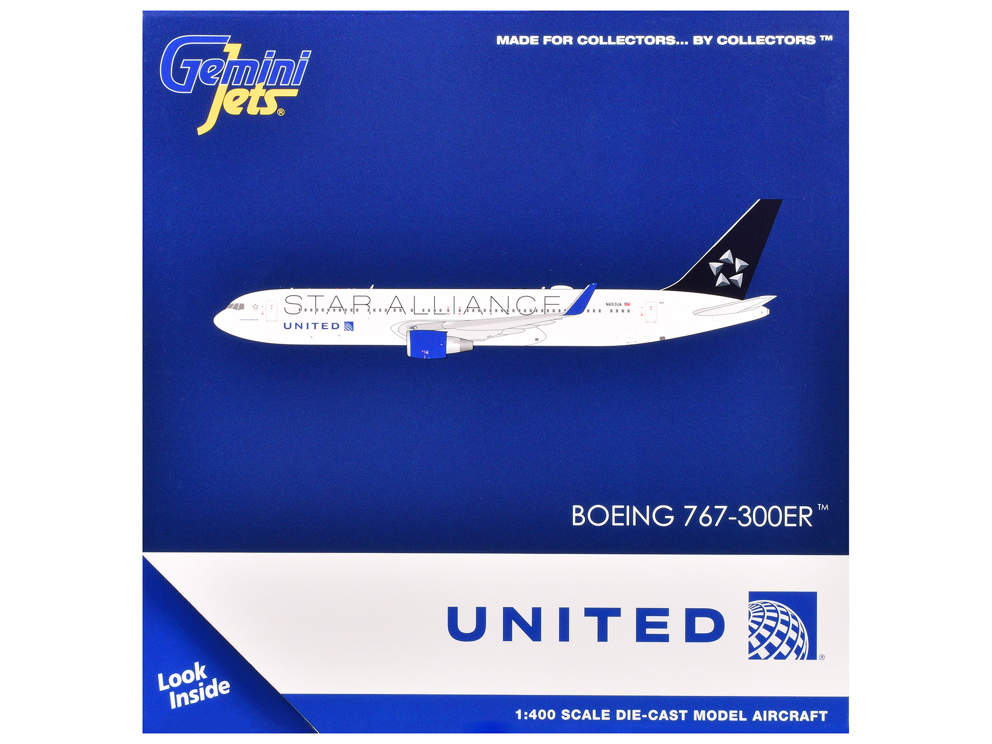 - Brand new 1/400 scale diecast airplane model of Boeing 767-300ER Commercial Aircraft “United Airlines Star Alliance” (N76516) White with Black Tail die cast model by GeminiJets.