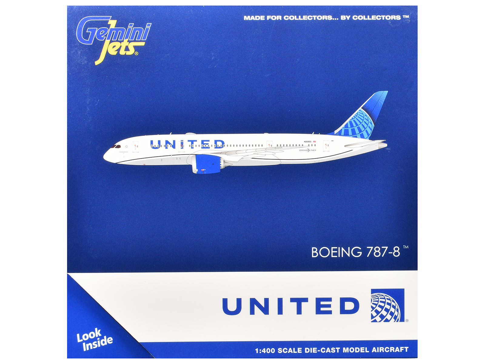 - Brand new 1/400 scale diecast airplane model of Boeing 787-8 Commercial Aircraft “United Airlines” (N26902) White with Blue Tail die cast model by GeminiJets.