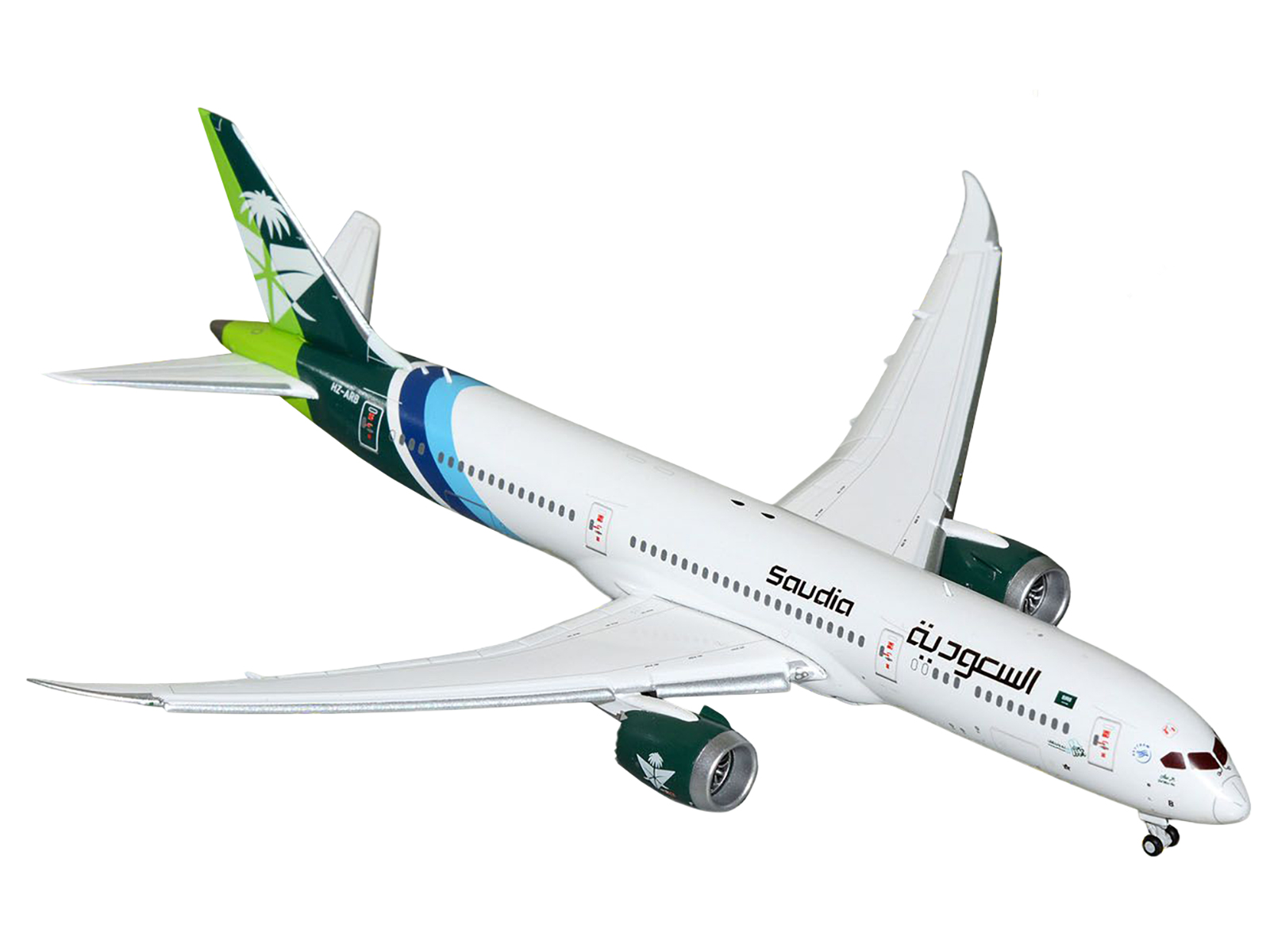 - Brand new 1/400 scale diecast airplane model of Boeing 787-9 Commercial Aircraft with Flaps Down “Saudia Airline” (HZ-ARB) White with Tail Graphics die cast model by GeminiJets.