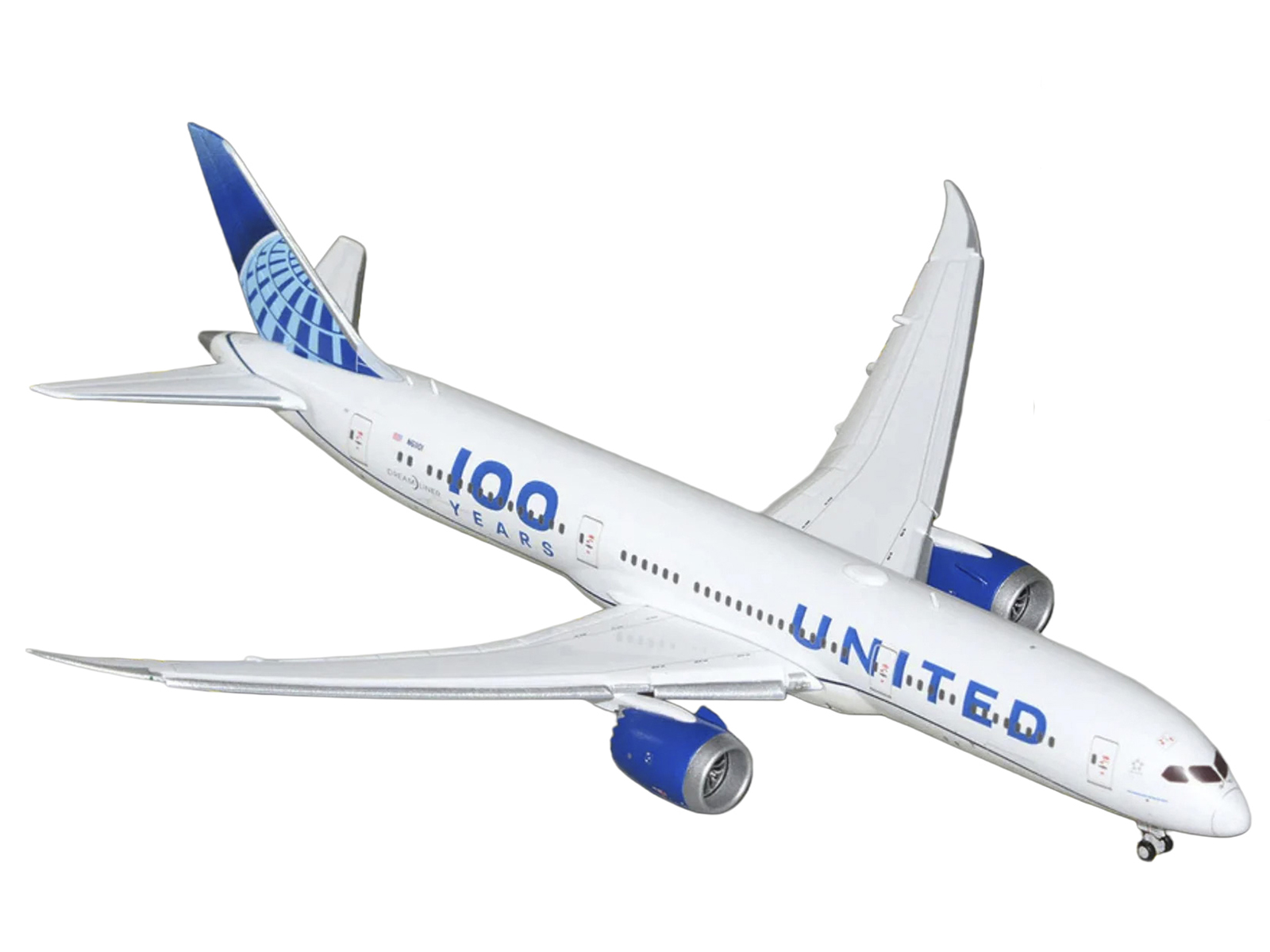 - Brand new 1/400 scale diecast airplane model of Boeing 787-9 Commercial Aircraft with Flaps Down “United Airlines 100 Years” (N61101) White with Graphics and Blue Tail die cast model by GeminiJets.
