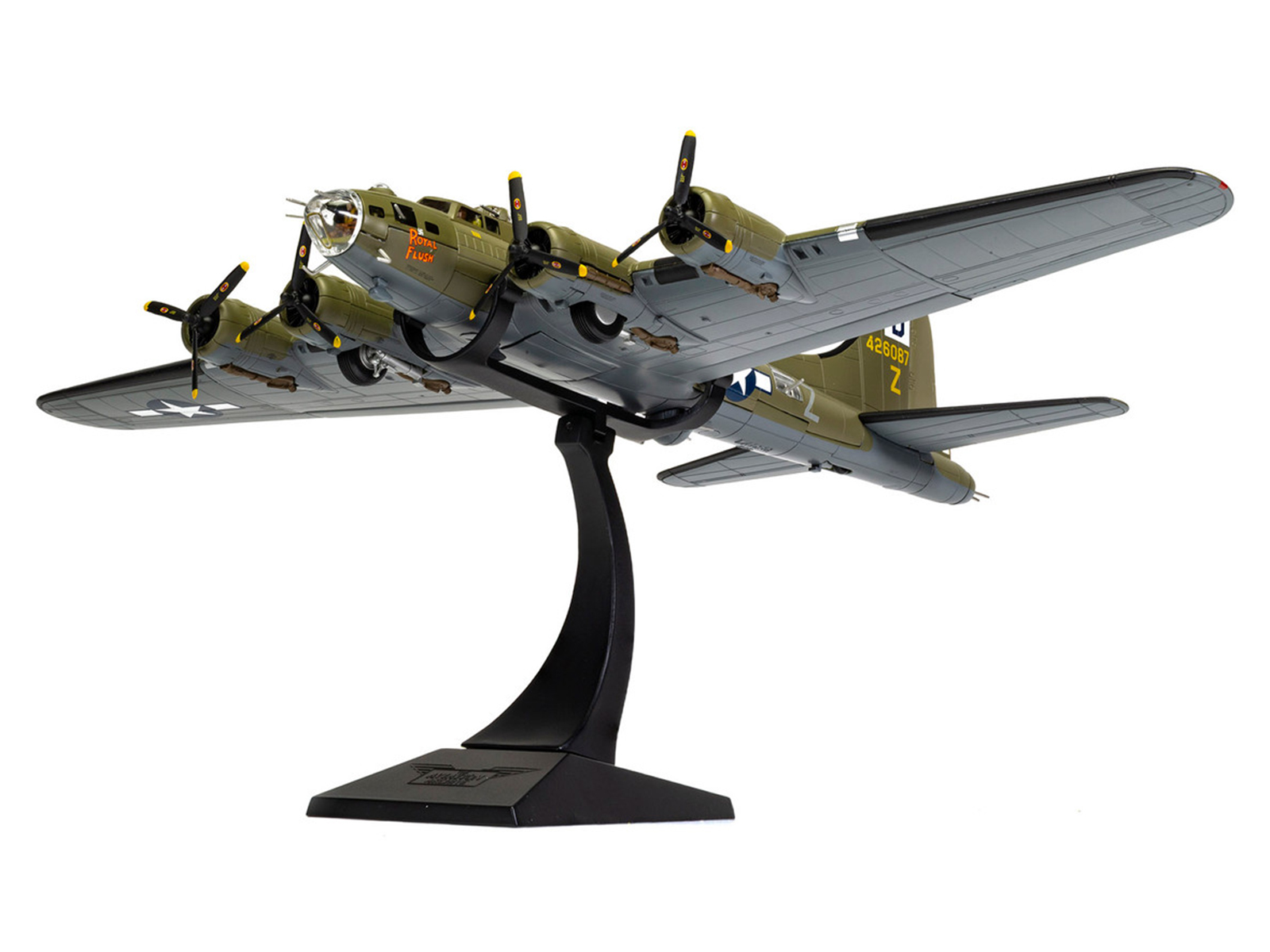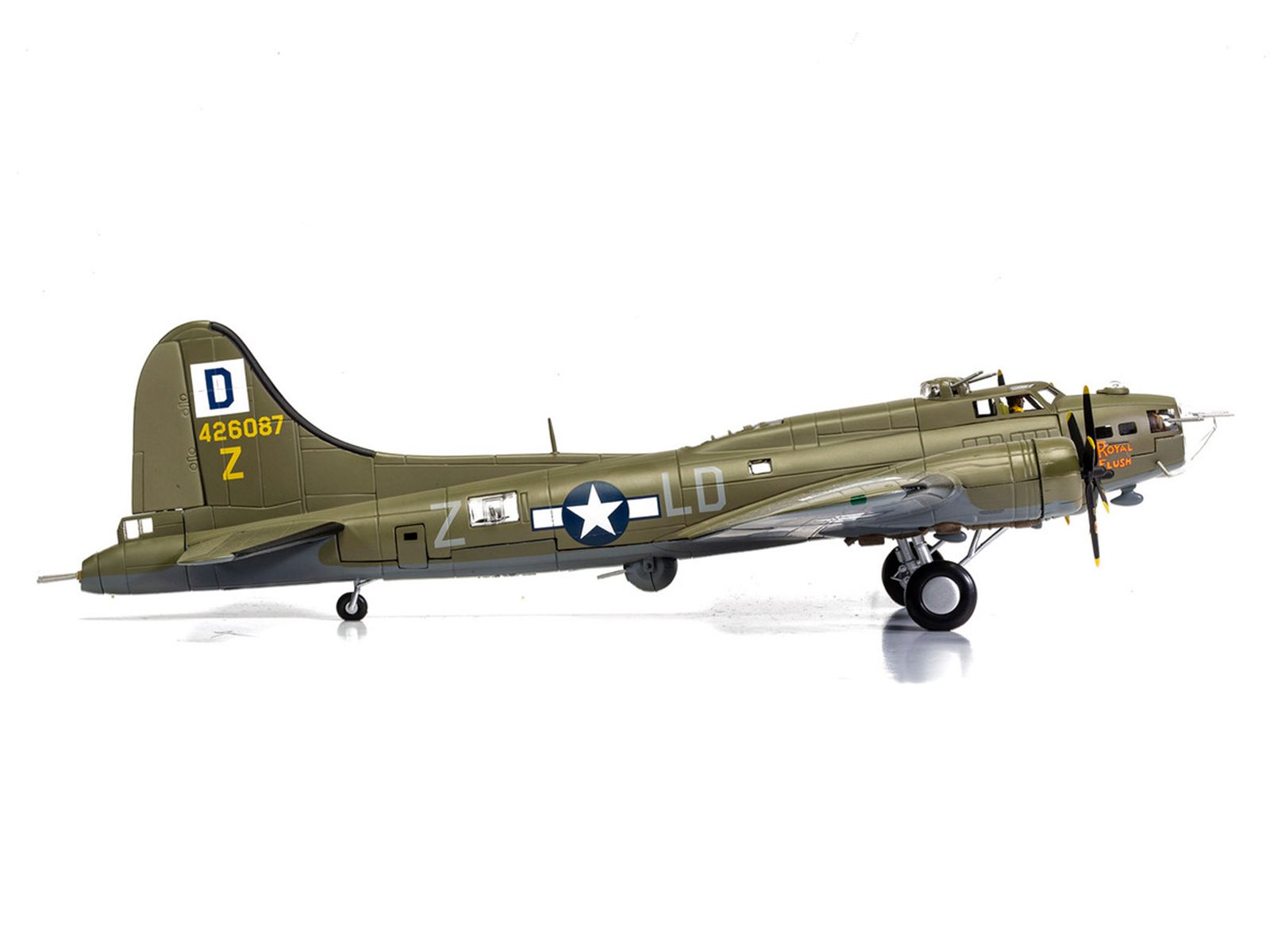 - Brand new 1/72 scale diecast model of Boeing B-17F Flying Fortress Bomber Aircraft “42-6087, Royal Flush, Lieutenant Robert ‘Rosie’ Rosenthal, 418th BS, 100th Bomb Group, Thorpe Abbotts” (1943) United States Army Air Forces “The Aviation Archive” Series die cast model by Corgi.