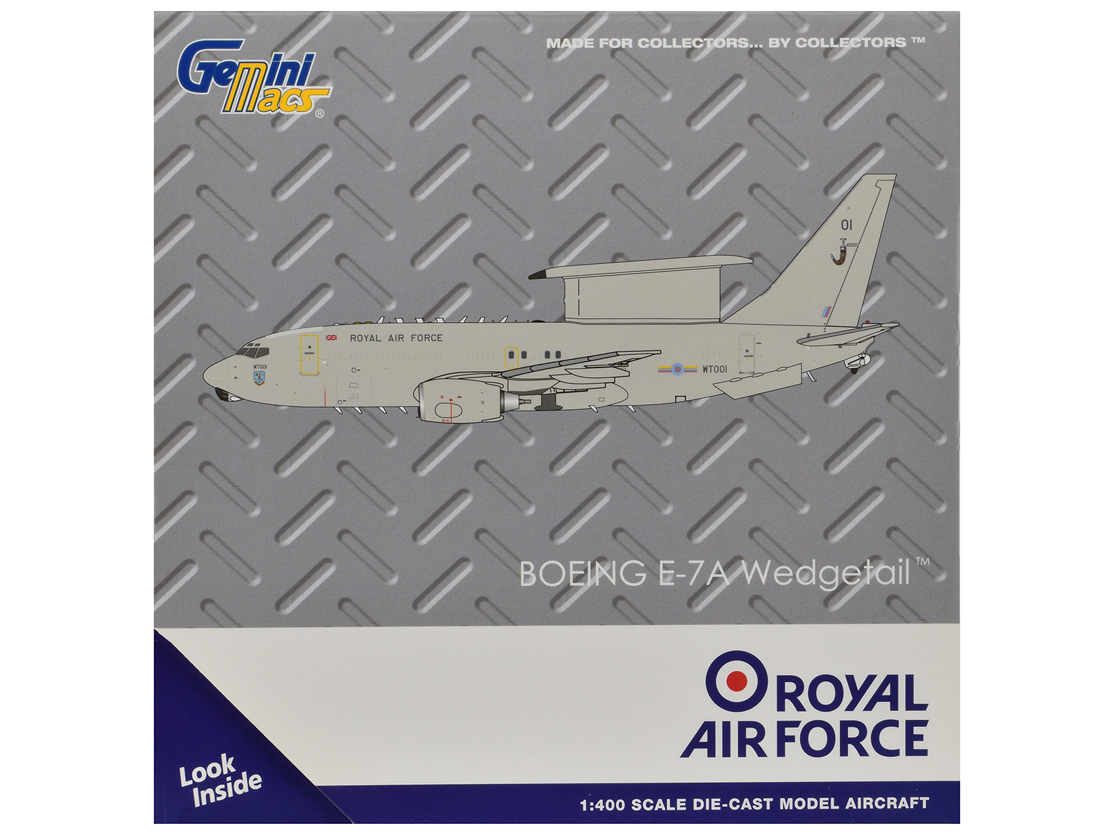 - Brand new 1/400 scale diecast airplane model of Boeing E-7A Wedgetail Aircraft “Royal Air Force” (WT001) Gray “Gemini Macs” Series die cast model by GeminiJets.