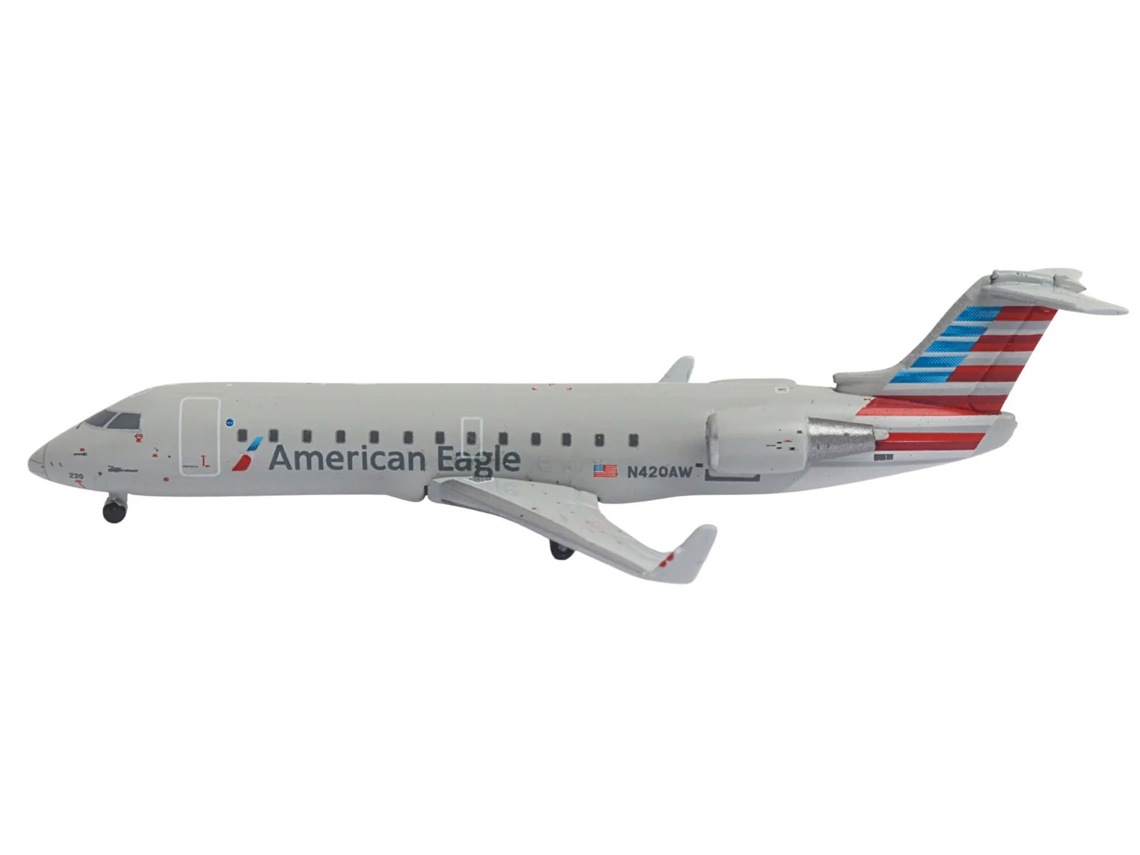 - Brand new 1/400 scale diecast airplane model of Bombardier CRJ200 Commercial Aircraft “American Eagle – Air Wisconsin” (N420AW) Gray with Red and Blue Tail die cast model by GeminiJets.