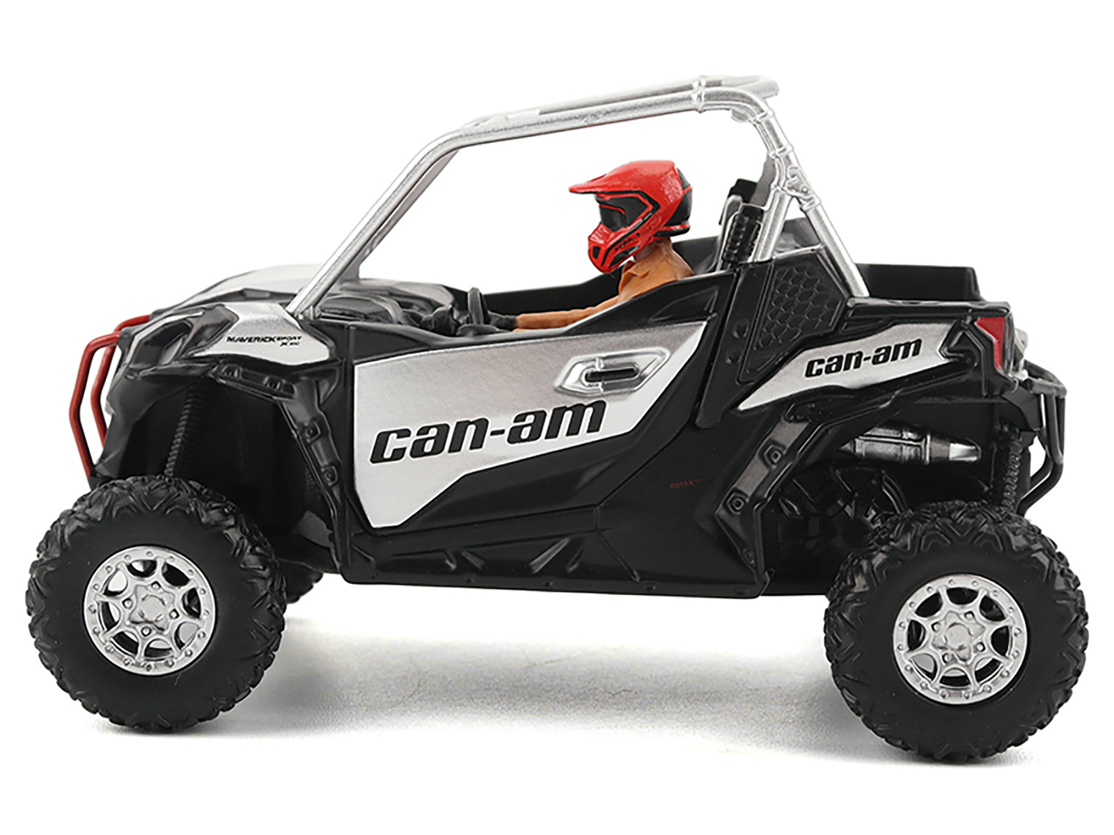 - Brand new 1/32 scale diecast model of Can-Am Maverick Sport XXC 1000R Silver Metallic and Black with Driver Figure die cast model by BRP Models.