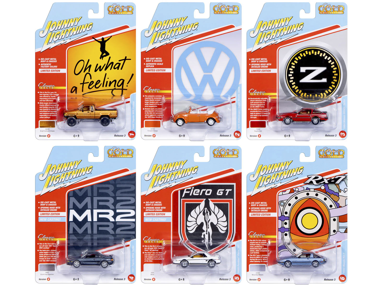 - Brand new 1/64 scale diecast car models of “Classic Gold Collection” 2026 Release 1 Set B of 6 Cars die cast model cars by Johnny Lightning.