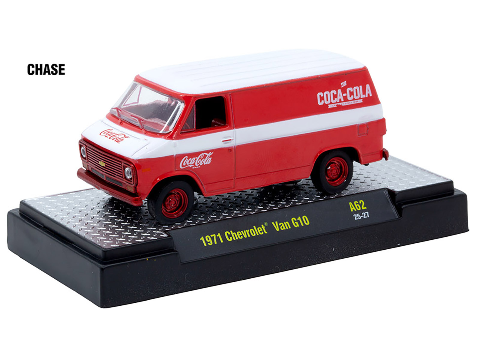 - 1) 1971 Chevrolet G10 Van Red with White Top and Stripes “Coca-Cola”.