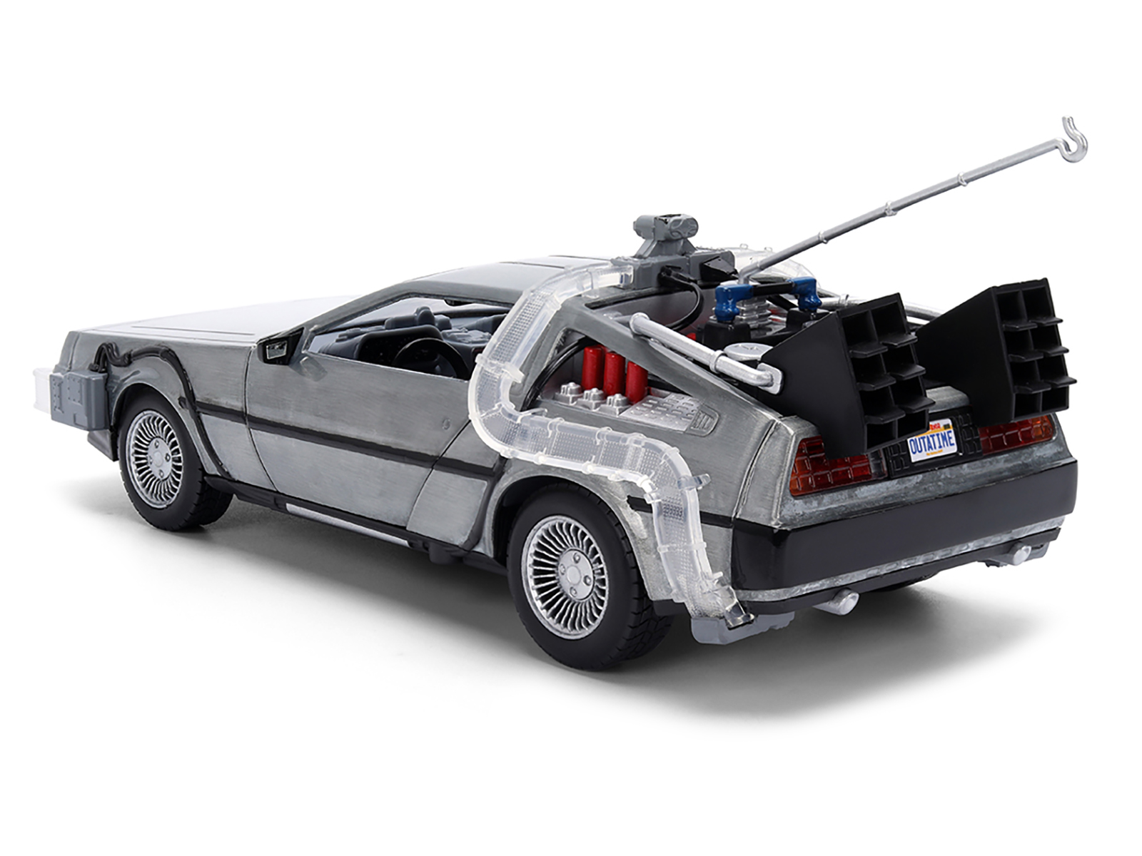 - Brand new 1/24 scale diecast car model of DeLorean Brushed Metal Time Machine with Lights “Back to the Future” (1985) Movie “40th Anniversary” Special Packaging “Hollywood Rides” Series die cast model car by Jada.