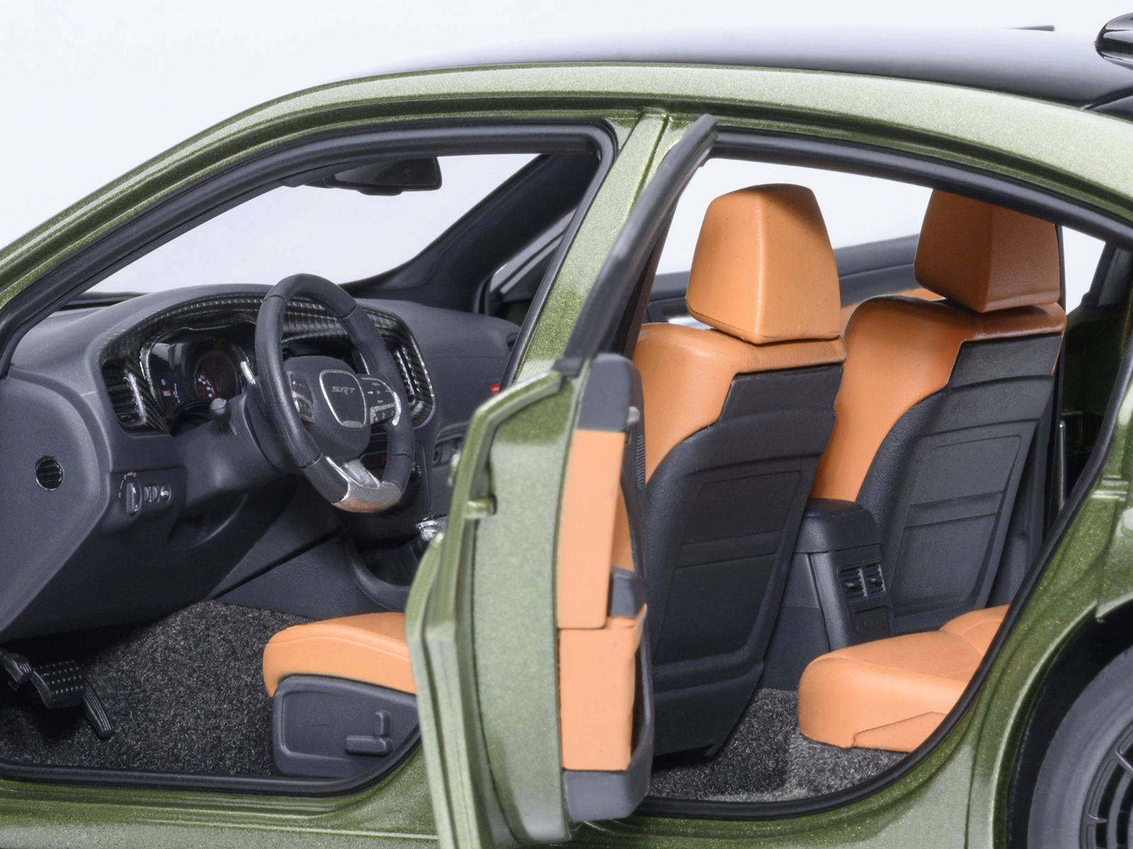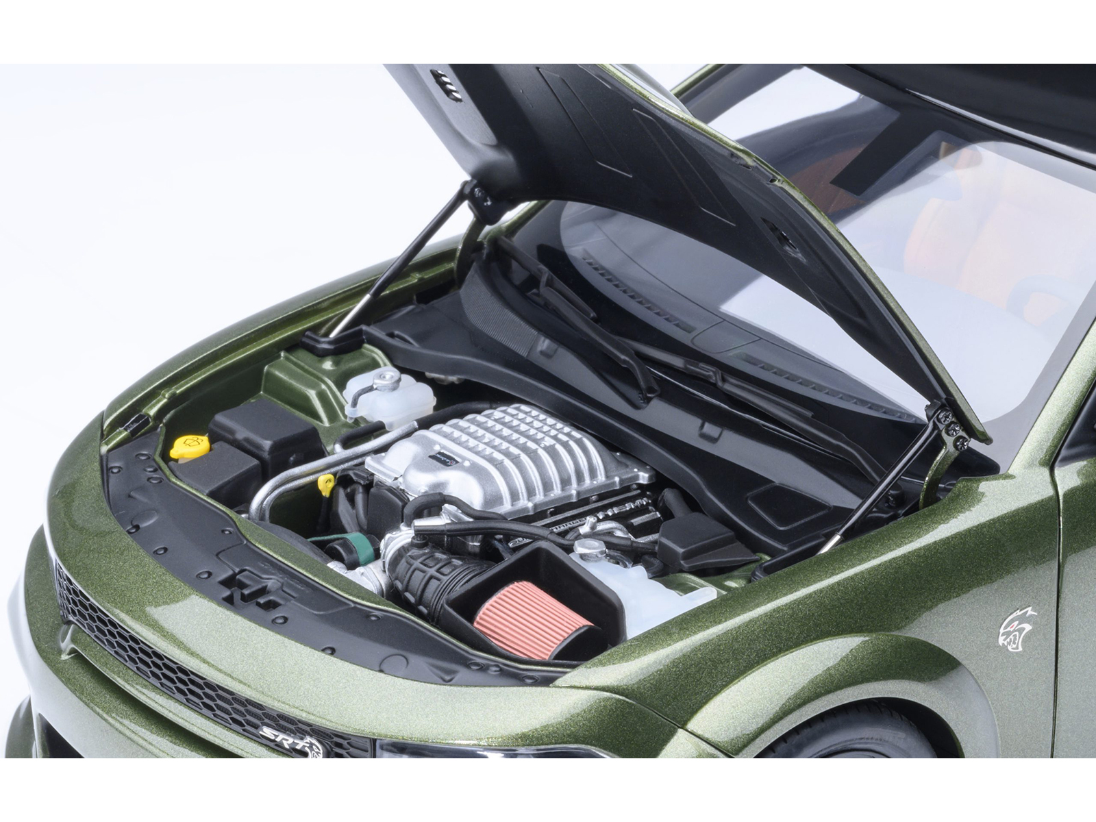 - Brand new 1/18 scale model car of Dodge Charger SRT Hellcat Redeye F8 Green Metallic with Matt Black Top car model by Autoart.