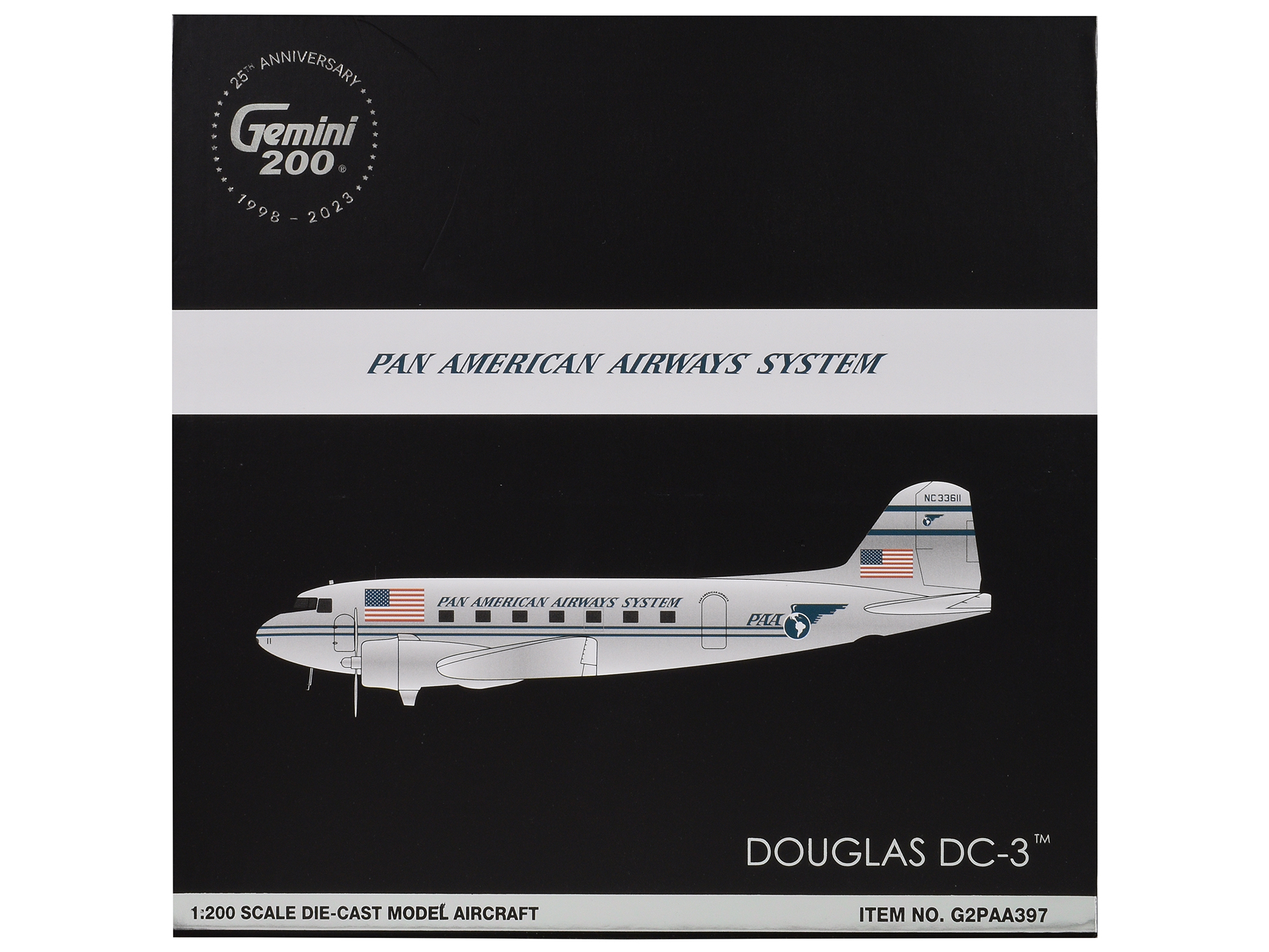 - Brand new 1/200 scale diecast airplane model of Douglas DC-3 Commercial Aircraft “Pan American Airways” (NC33611) Polished Metal Finish “Gemini 200” Series die cast model by GeminiJets.