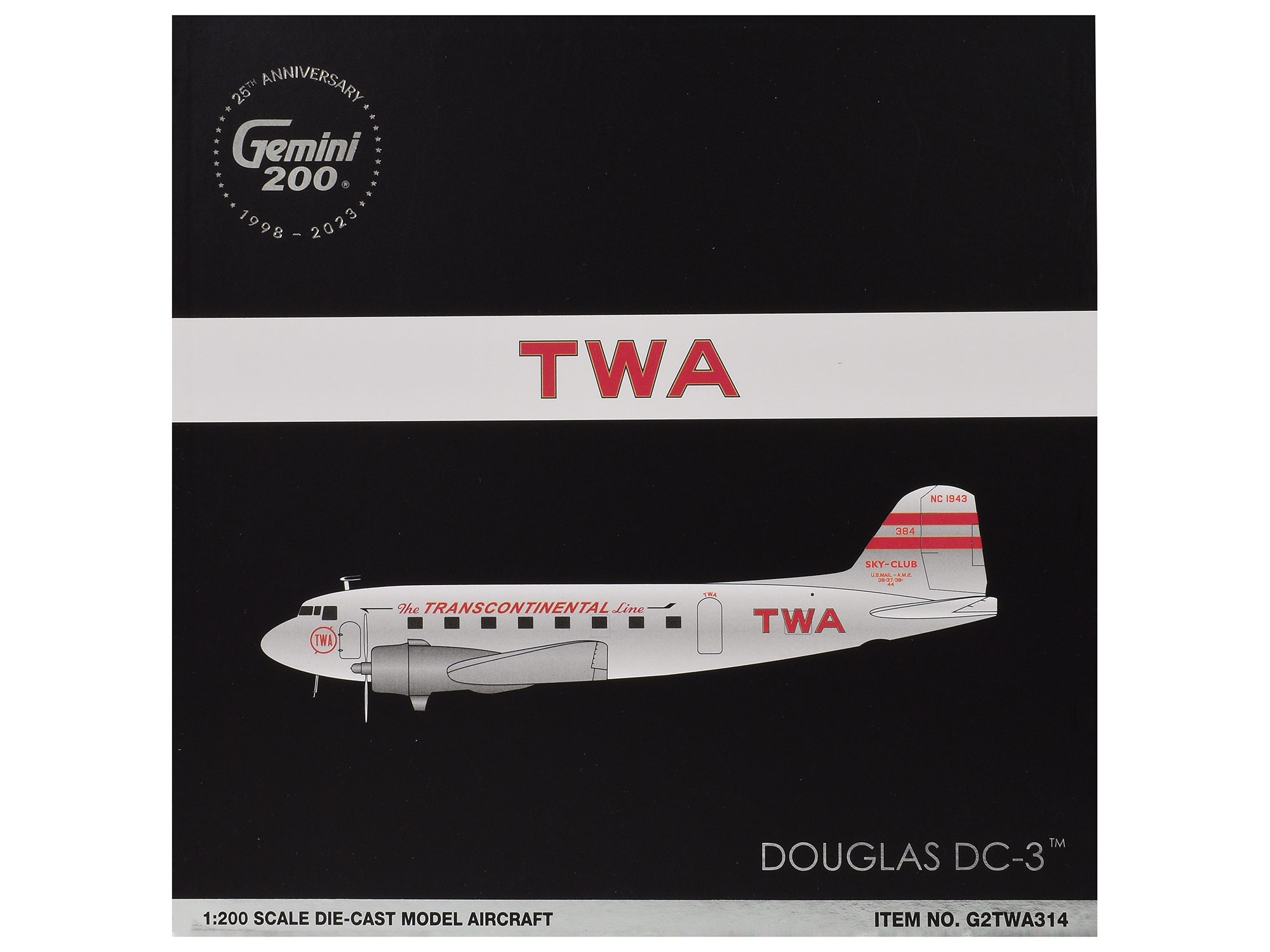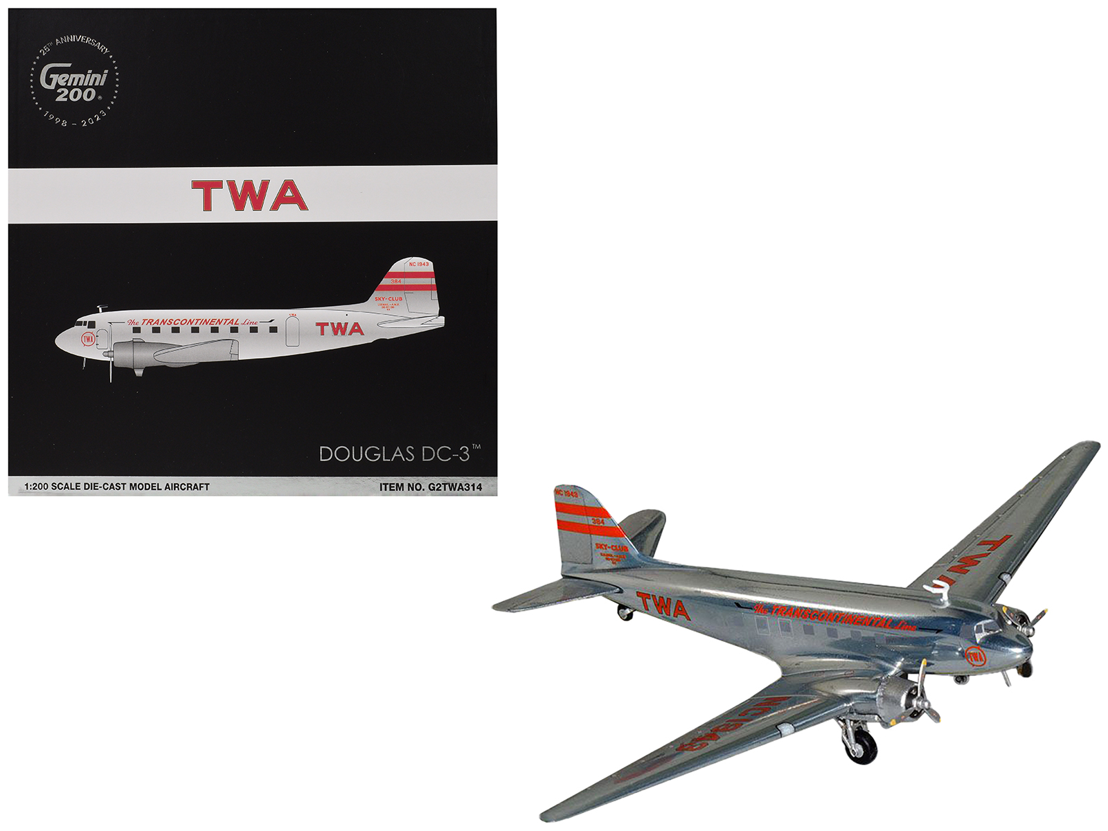 - Brand new 1/200 scale diecast airplane model of Douglas DC-3 Commercial Aircraft “TWA (Trans World Airlines)” (NC1943) Polished Metal Finish with Red Tail Stripes “Gemini 200” Series die cast model by GeminiJets.