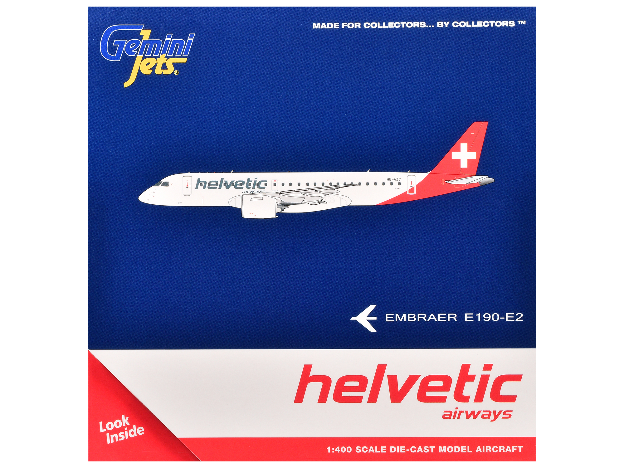 - Brand new 1/400 scale diecast airplane model of Embraer E190-E2 Commercial Aircraft “Helvetic Airways” (HB-AZC) White with Red Tail die cast model by GeminiJets.