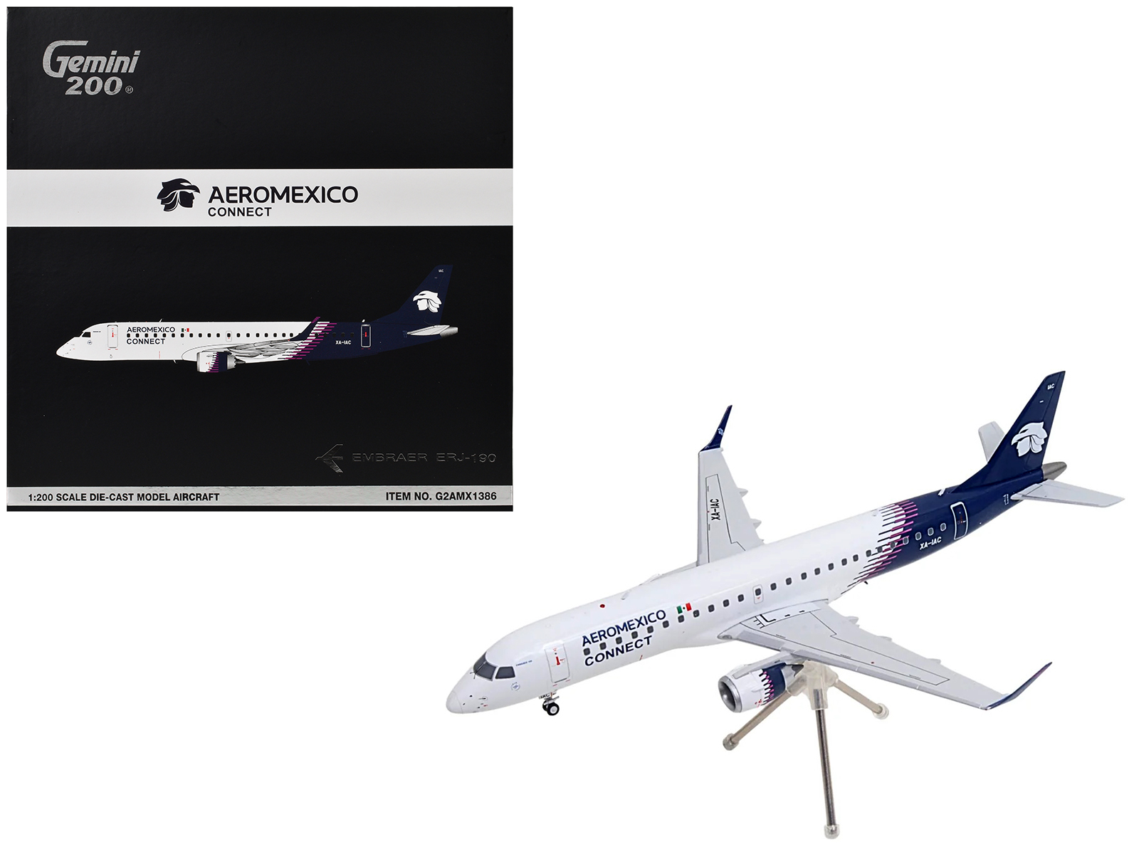- Brand new 1/200 scale diecast airplane model of Embraer ERJ-190 Commercial Aircraft “Aeromexico Connect” (XA-IAC) White with Blue Tail “Gemini 200” Series die cast model by GeminiJets.