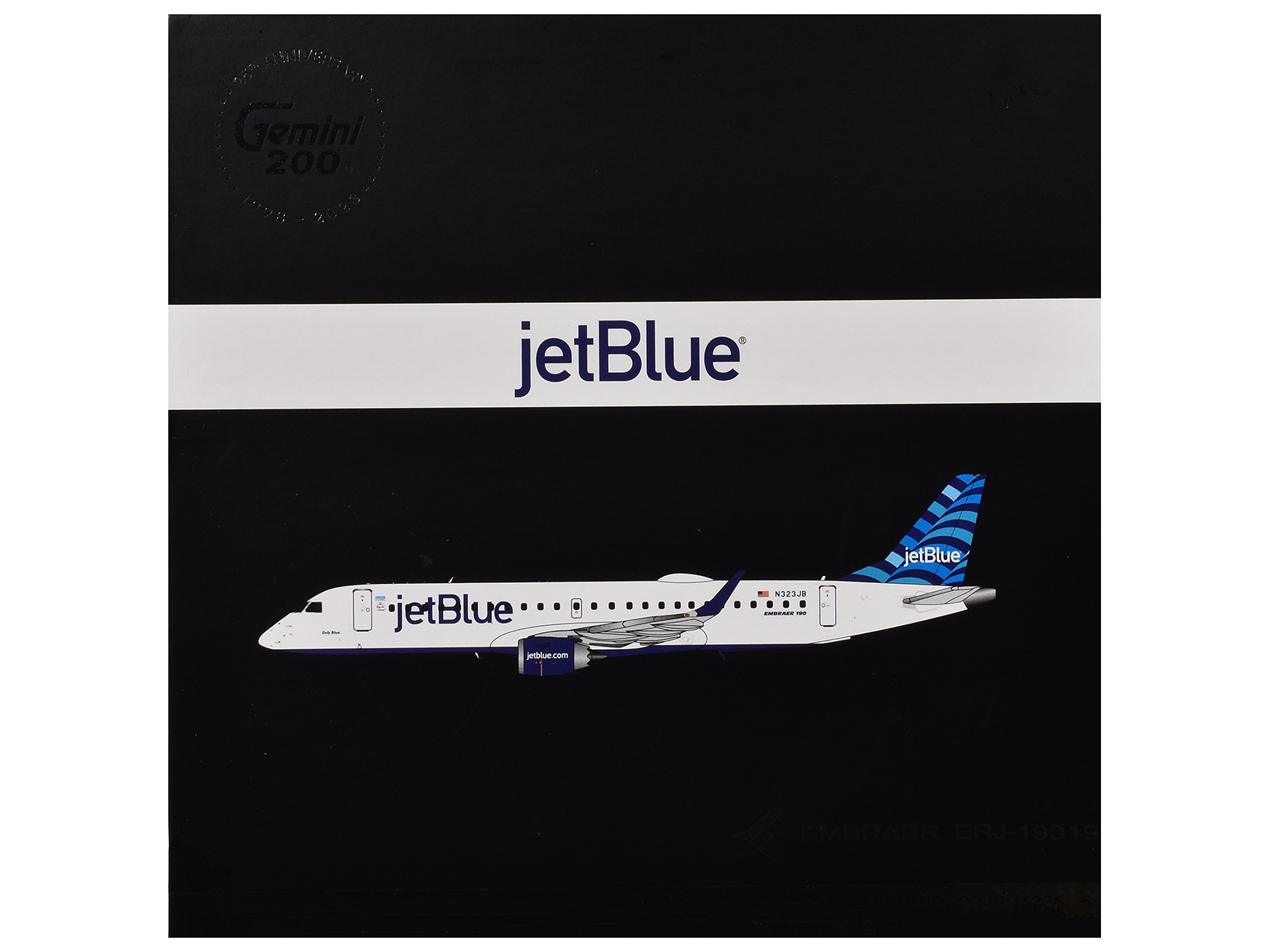 - Brand new 1/200 scale diecast airplane model of Embraer ERJ-190 Commercial Aircraft “JetBlue Airways” (N323JB) White with Blue Striped Tail “Gemini 200” Series die cast model by GeminiJets.