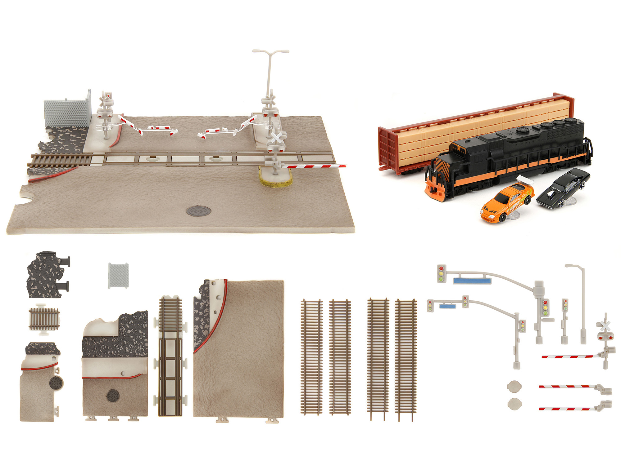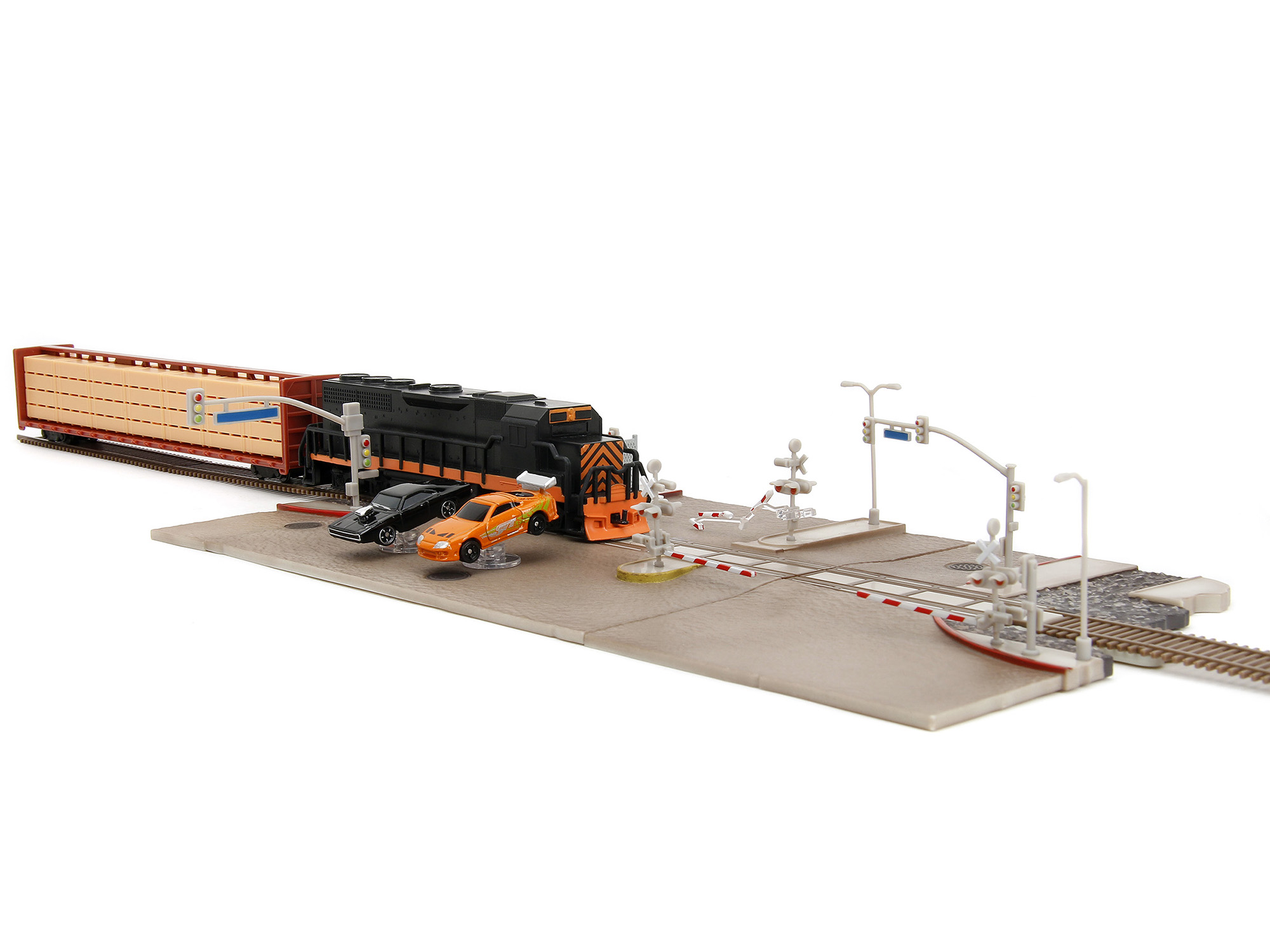 - Brand new scale model of “Fast & Furious” Final Race Diorama with Toyota Supra Orange and Dodge Charger Black “Nano Scene” Series model by Jada.