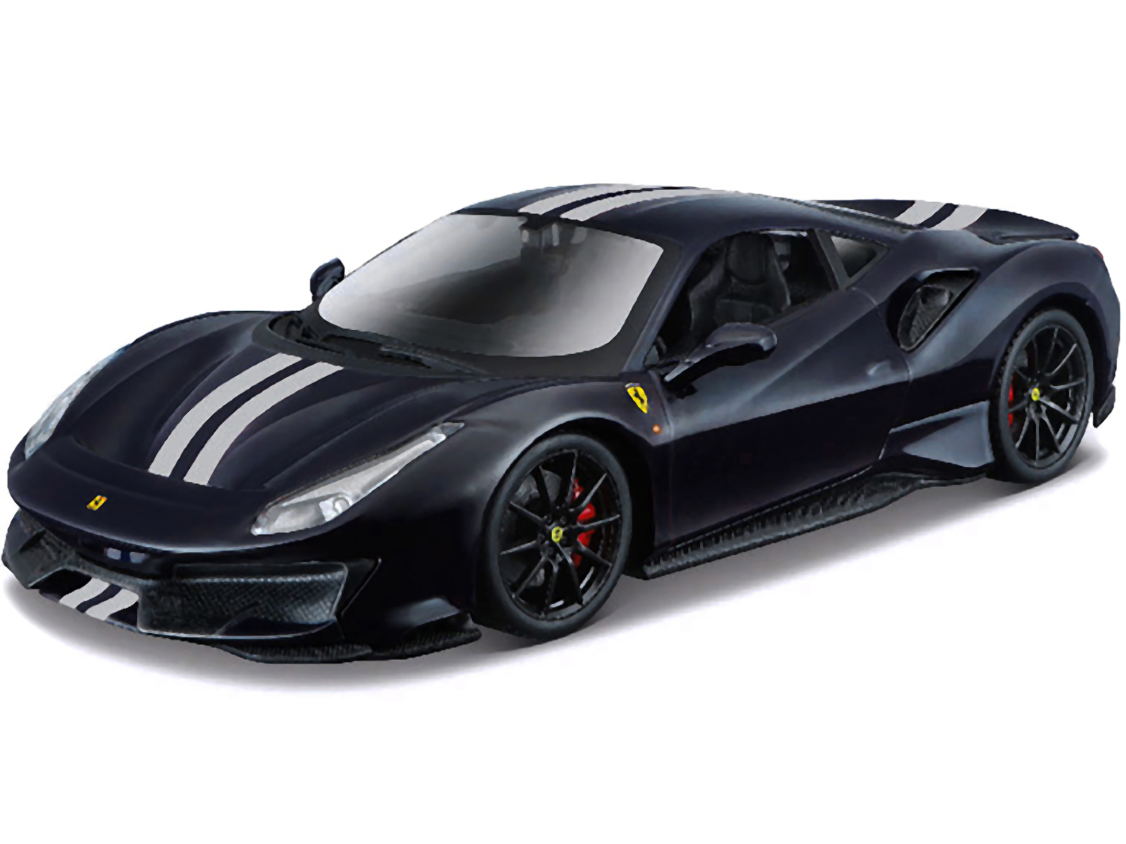 - Brand new 1/24 scale diecast car model of Ferrari 488 Pista Dark Blue Metallic with Silver Stripes die cast model car by Bburago.