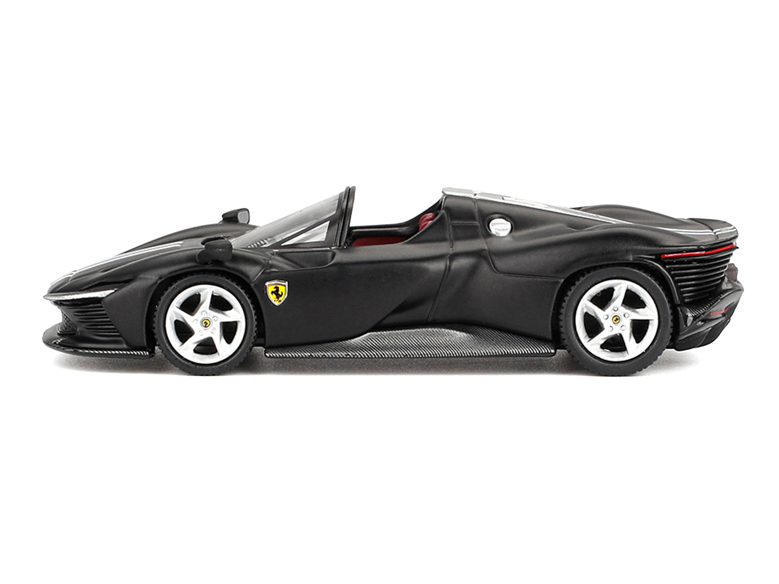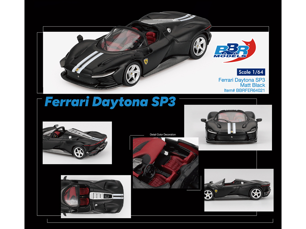 - Brand new 1/64 scale diecast car model of Ferrari Daytona SP3 Matt Black with White Stripes and Red Interior die cast model car by BBR Models.