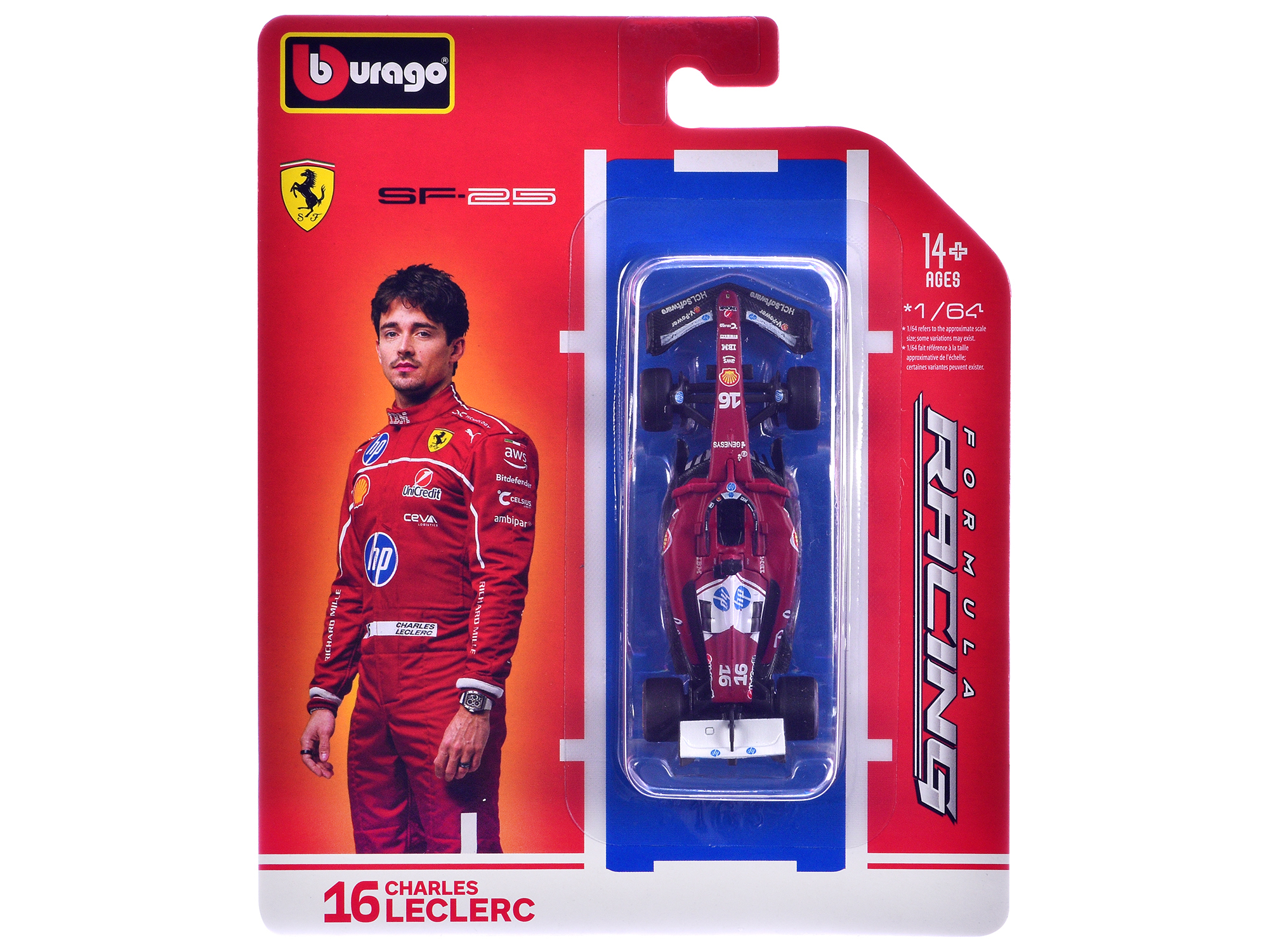 - Brand new 1/64 scale diecast car model of Ferrari SF-25 #16 Charles Leclerc Formula One F1 World Championship (2025) “Formula Racing” Series die cast model car by Bburago.