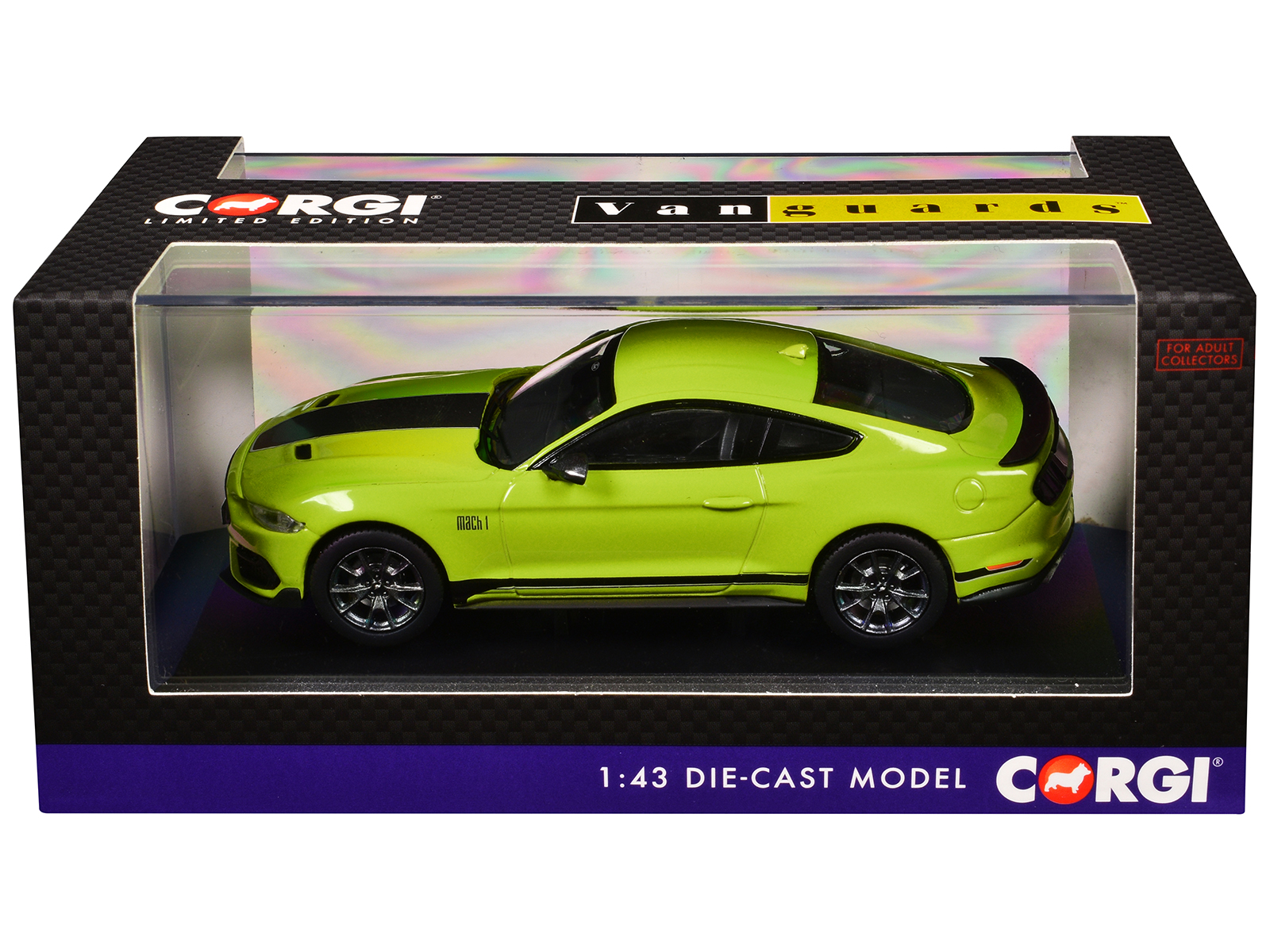 - Brand new 1/43 scale diecast car model of Ford Mustang Mk6 Mach 1 RHD (Right Hand Drive) Grabber Yellow with Black Stripes “Vanguards” Series die cast model car by Corgi.