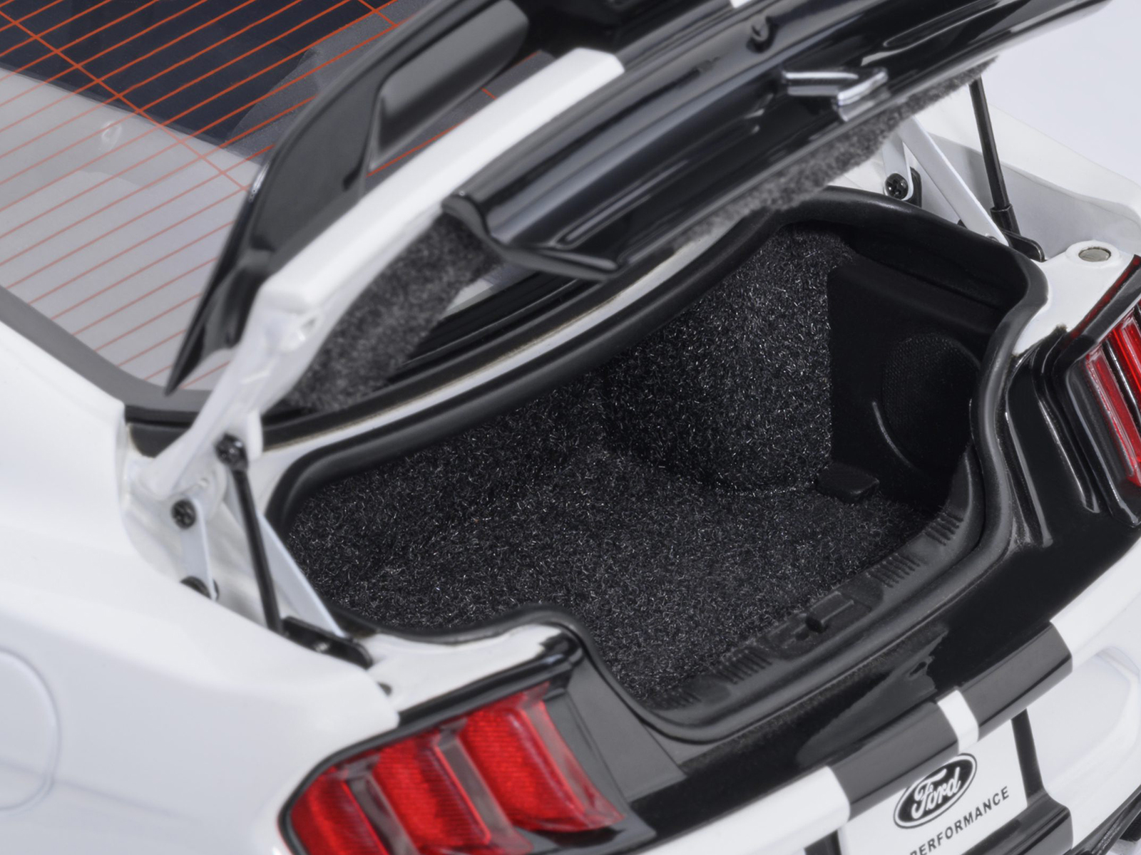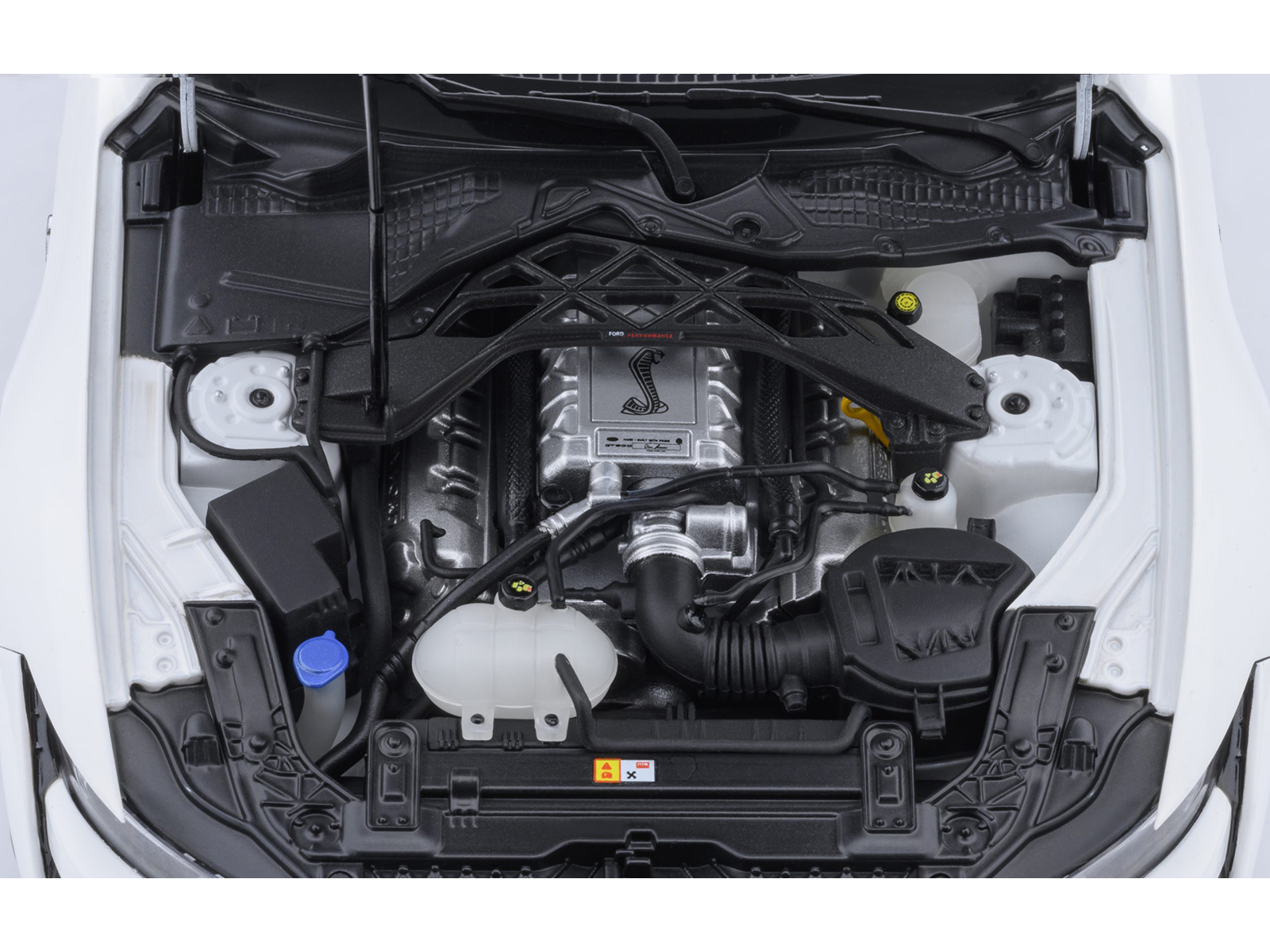 - Brand new 1/18 scale car model of Ford Mustang Shelby GT500 Oxford White with Black Stripes model car by Autoart.