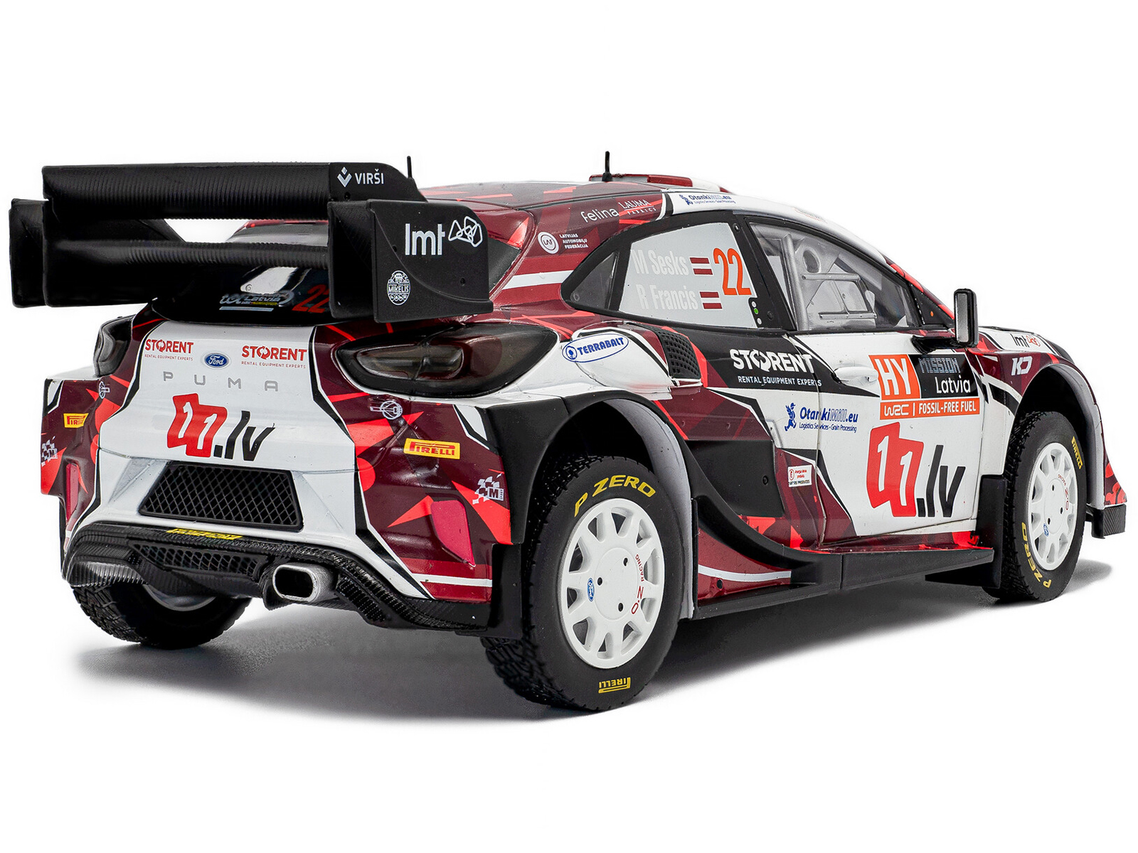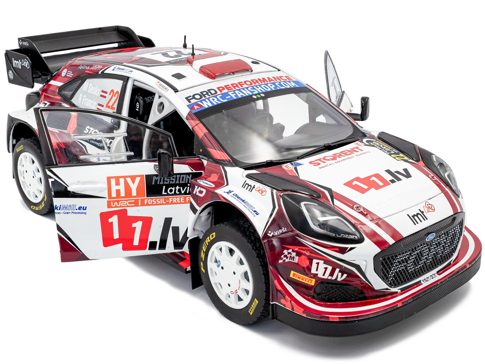 - Brand new 1/18 scale diecast car model of Ford Puma Rally1 #22 Martins Sesks – Renars Francis “Rally Latvia” (2024) “Competition” Series die cast model car by Solido.