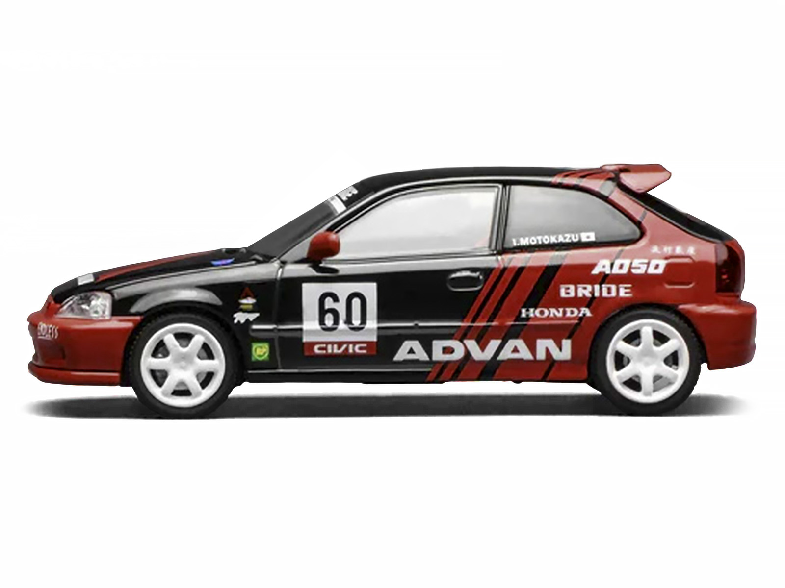 - Brand new 1/64 scale diecast car model of Honda Civic Type R (EK9) RHD (Right Hand Drive) #60 “Advan” Black and Red die cast model car by MotorHelix.