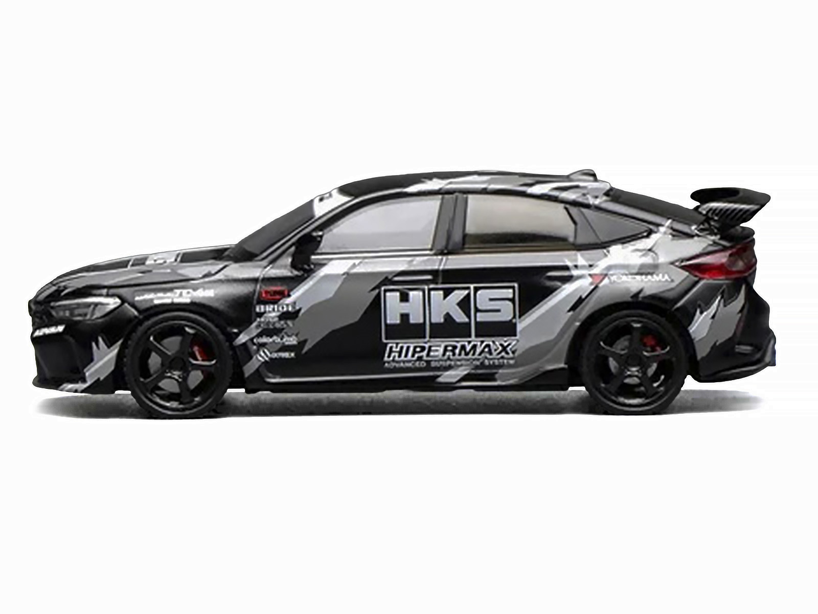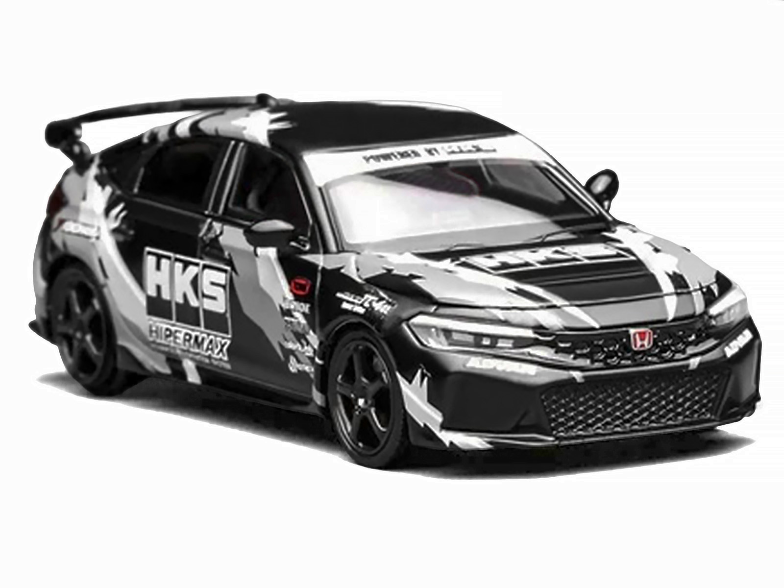 - Brand new 1/64 scale diecast car model of Honda Civic Type R (FL5) RHD (Right Hand Drive) “HKS” Matt Black with Graphics die cast model car by MotorHelix.