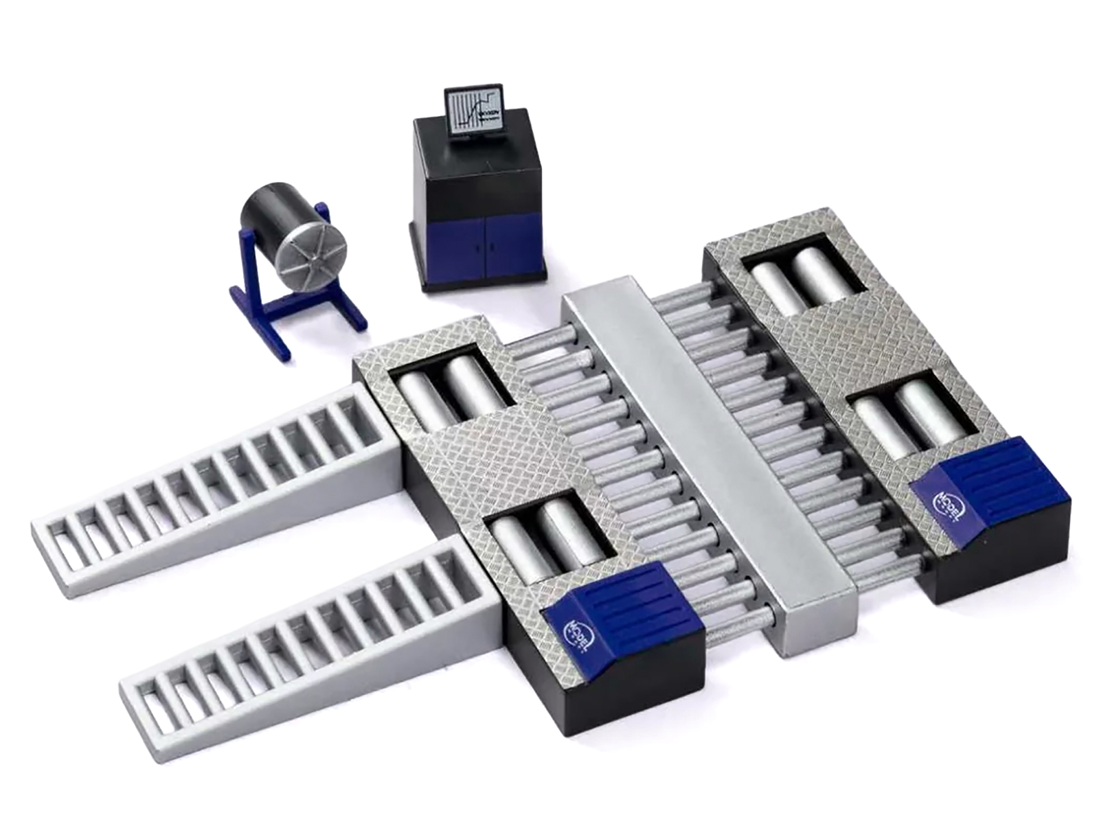 - Dimensions approximately L-2, W-2 inches, ramps are 1.25 inches long.