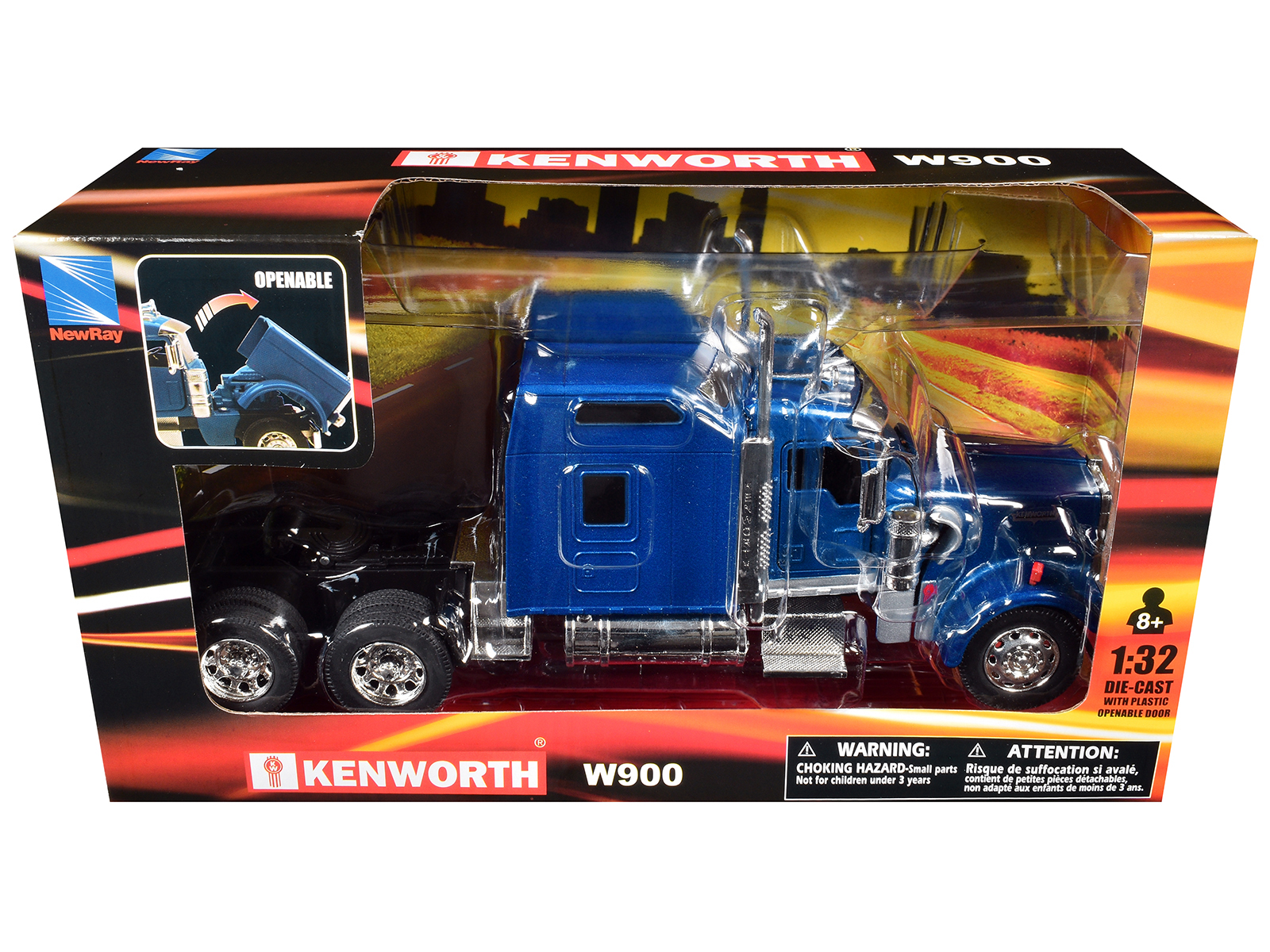 - Brand new 1/32 scale diecast model of Kenworth W900 Truck Tractor Blue Metallic die cast model by New Ray.