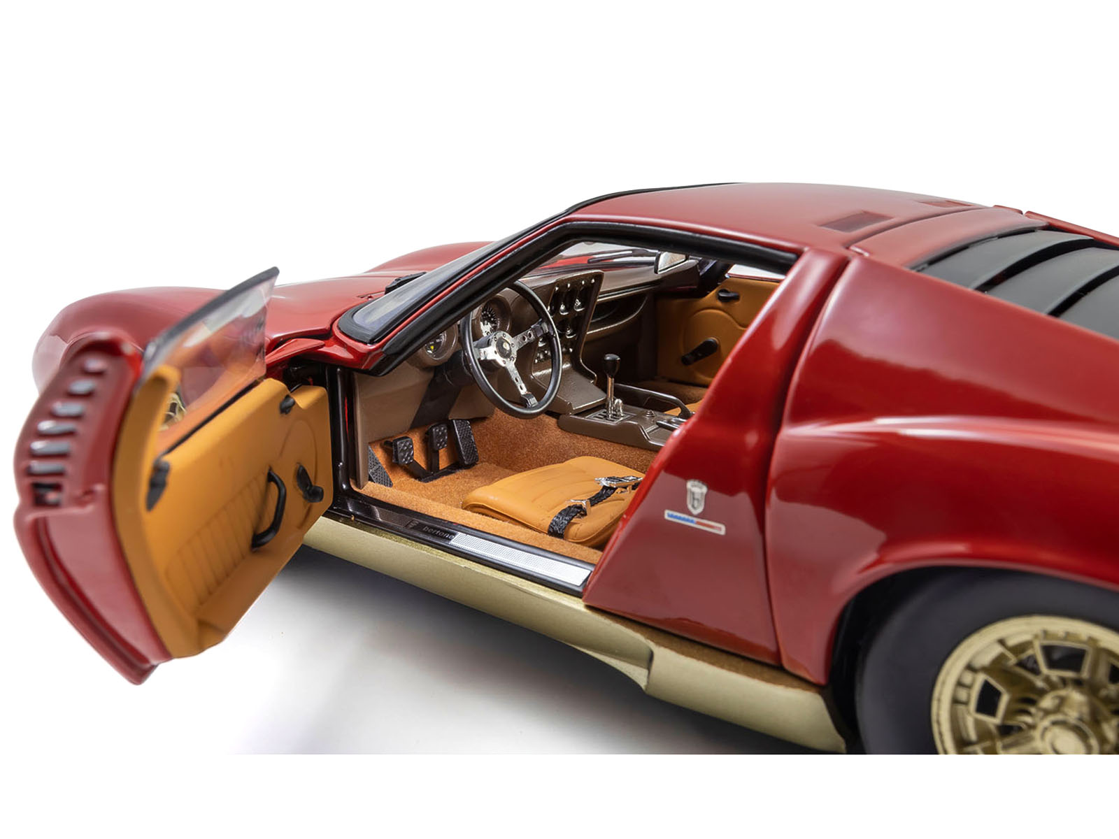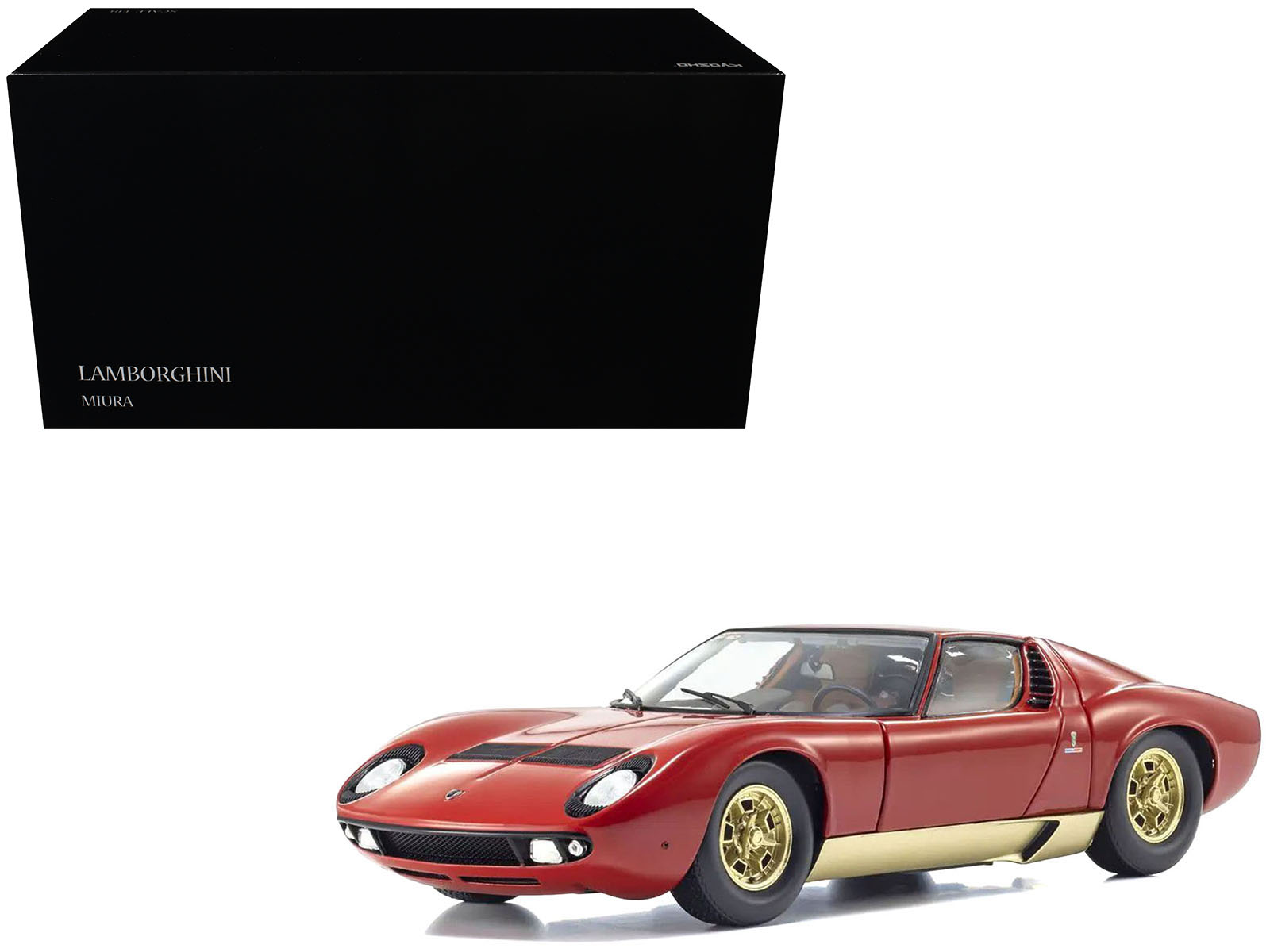 - Brand new 1/18 scale diecast car model of Lamborghini Miura P 400 Red with Gold Accents die cast model car by Kyosho.