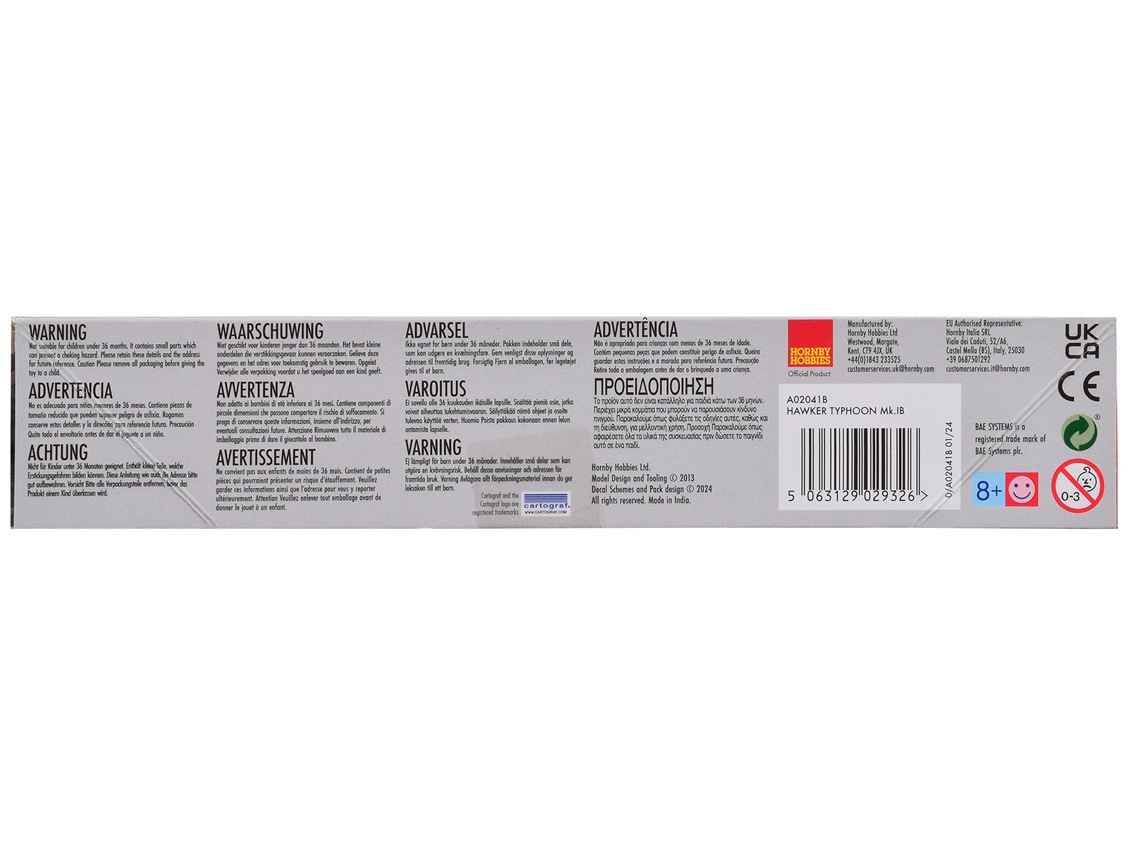 - Brand new plastic model kit of Hawker Typhoon Mk.IB Aircraft with 2 Scheme Options (Level 1) 1/72 plastic model kit by Airfix.
