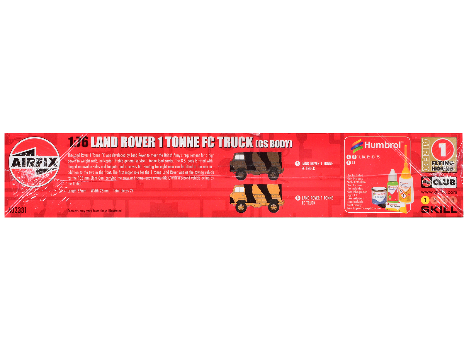 - Brand new plastic model kit of Land Rover 1 Tonne FC Truck (GS Body) with 3 Scheme Options (Level 1) 1/76 plastic model kit by Airfix.