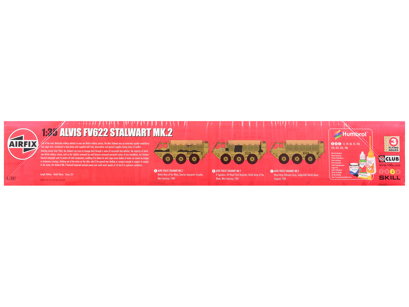 - Brand new plastic model kit of Alvis FV622 Stalwart Mk.2 Military Truck with 3 Scheme Options (Level 3) 1/35 plastic model kit by Airfix.