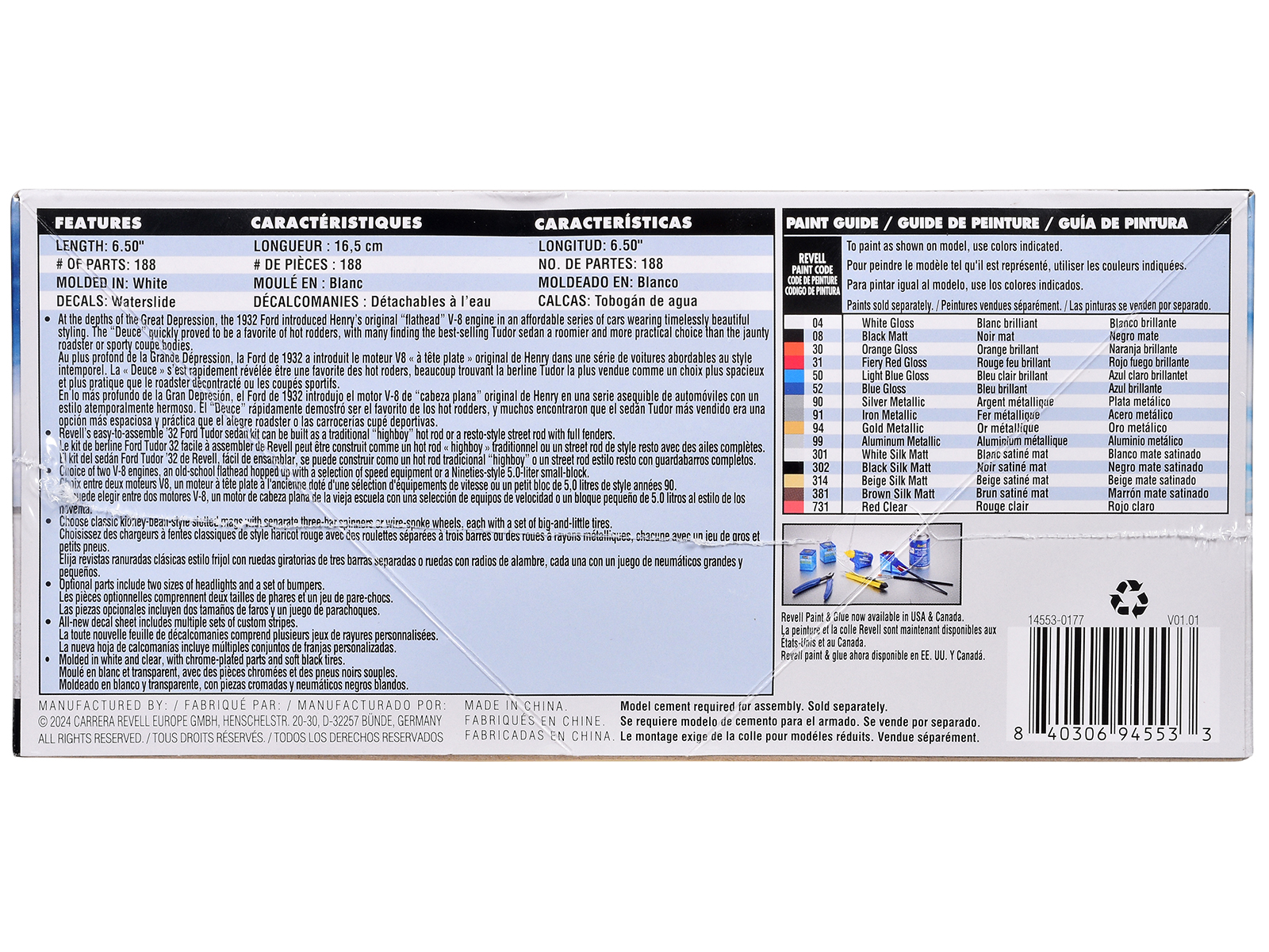 - Brand new plastic model kit of 1932 Ford Tudor Sedan 2-in-1 Kit (Level 4) 1/25 plastic model kit by Revell.
