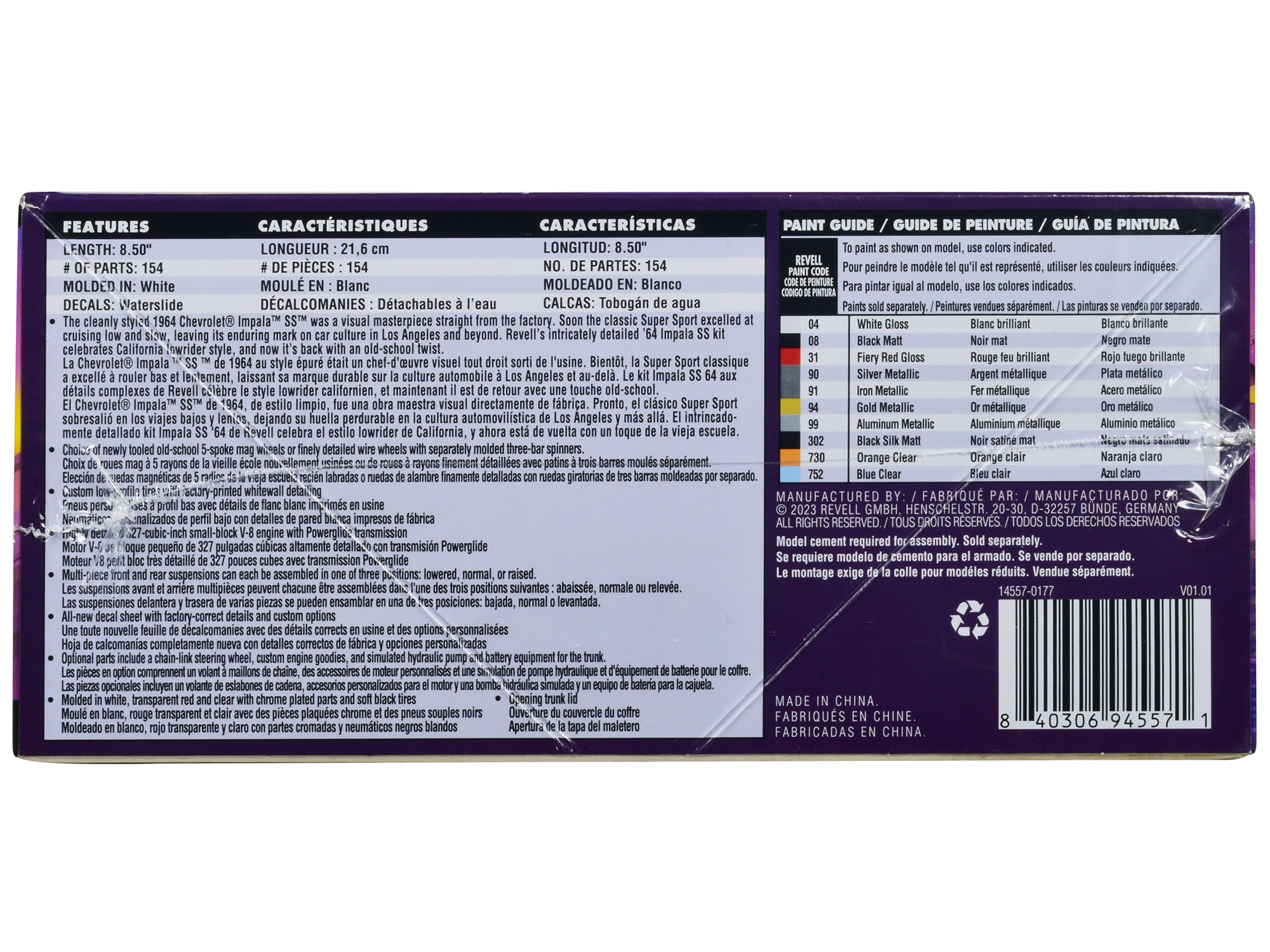 - Brand new plastic model kit of 1964 Chevrolet Impala SS Lowrider (Level 4) 1/25 plastic model kit by Revell.