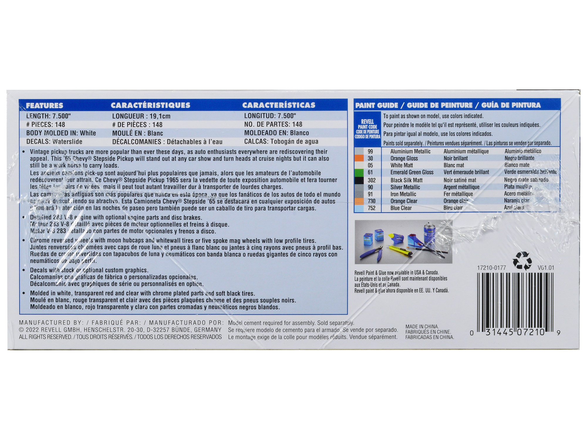 - Brand new plastic model kit of 1965 Chevrolet Stepside Pickup Truck 2-in-1 Kit (Level 4) 1/25 plastic model kit by Revell.