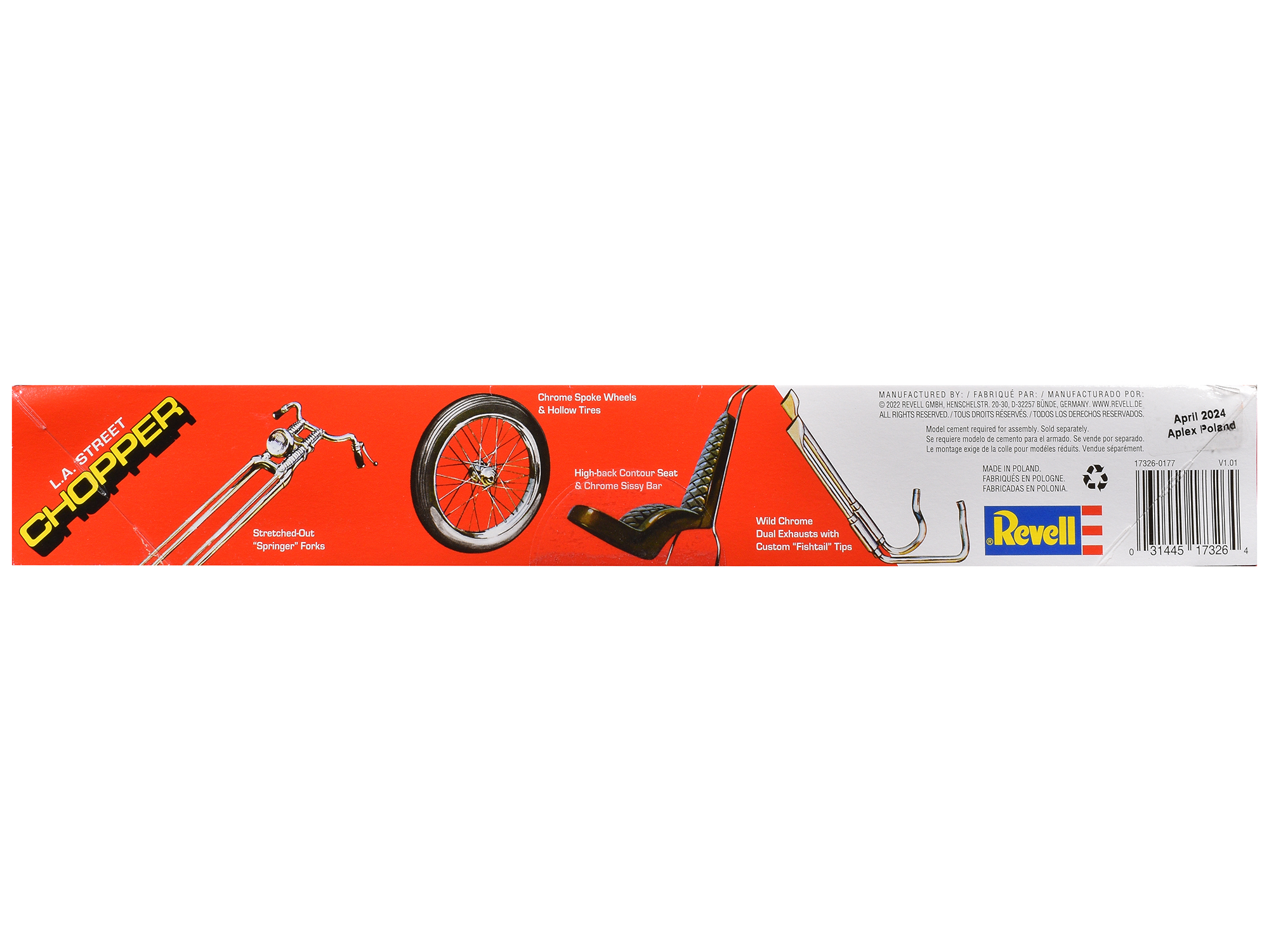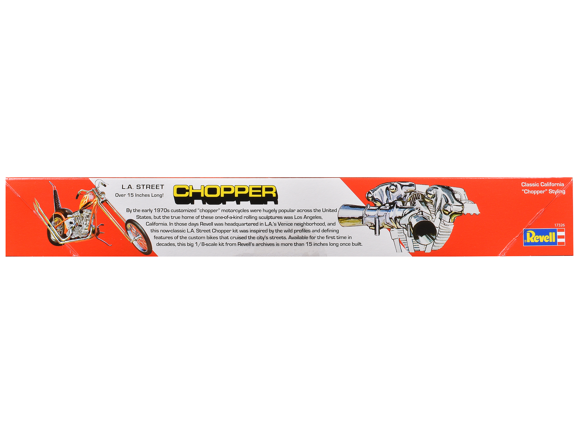 - Brand new plastic model kit of LA Street Chopper Motorcycle (Level 5) 1/8 plastic model kit by Revell.