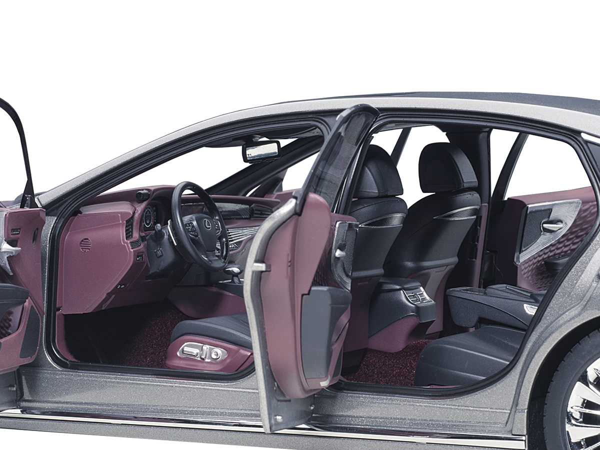 - Brand new 1/18 scale car model of Lexus LS500h Manganese Luster Gray Metallic with Crimson and Black Interior model car by Autoart.