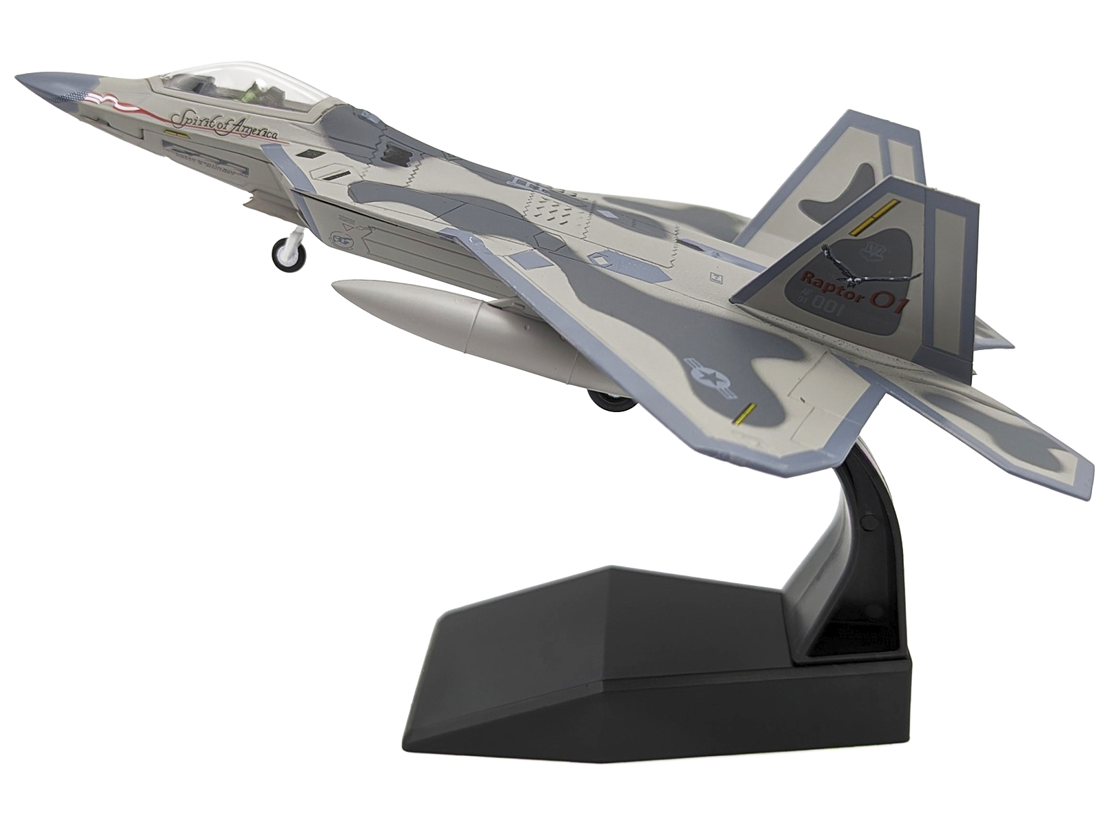 - Brand new 1/100 scale diecast airplane model of Lockheed Martin F-22A Raptor Aircraft “Spirit of America, 412th Test Wing, Edwards Air Force Base” (1997) United States Air Force die cast model.