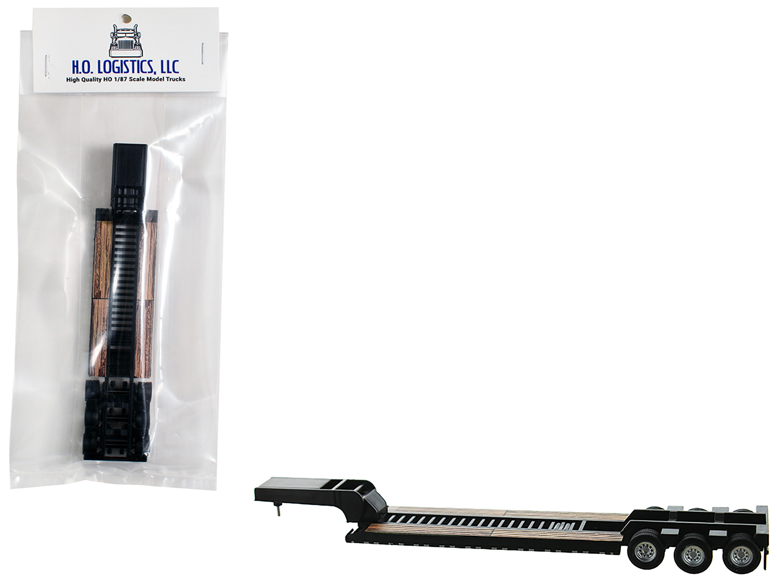 - Brand new 1/87 (HO) scale plastic car model of Low Boy Flatbed Trailer Black plastic model car by HO Logistics.