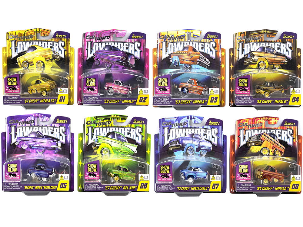- Brand new diecast car models of “Lowriders Show Glow” Series 1 Set of 8 Pieces die cast model cars by CarTuned.