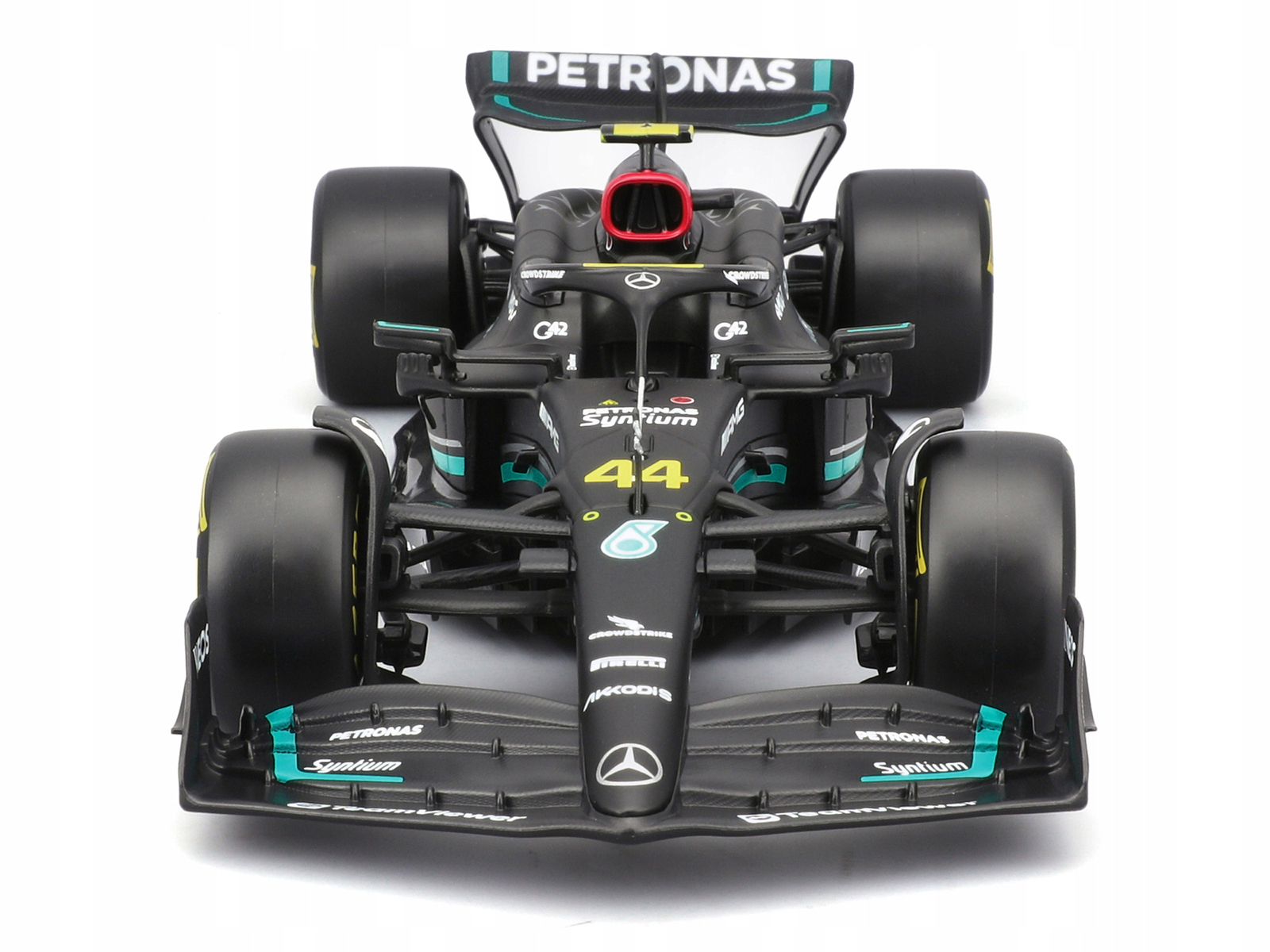 - Brand new 1/24 scale diecast car model of Mercedes-AMG F1 W14 E Performance #44 Lewis Hamilton “Petronas” Formula One F1 “World Championship” (2023) with Driver Figure “Race” Series die cast model car by Bburago.