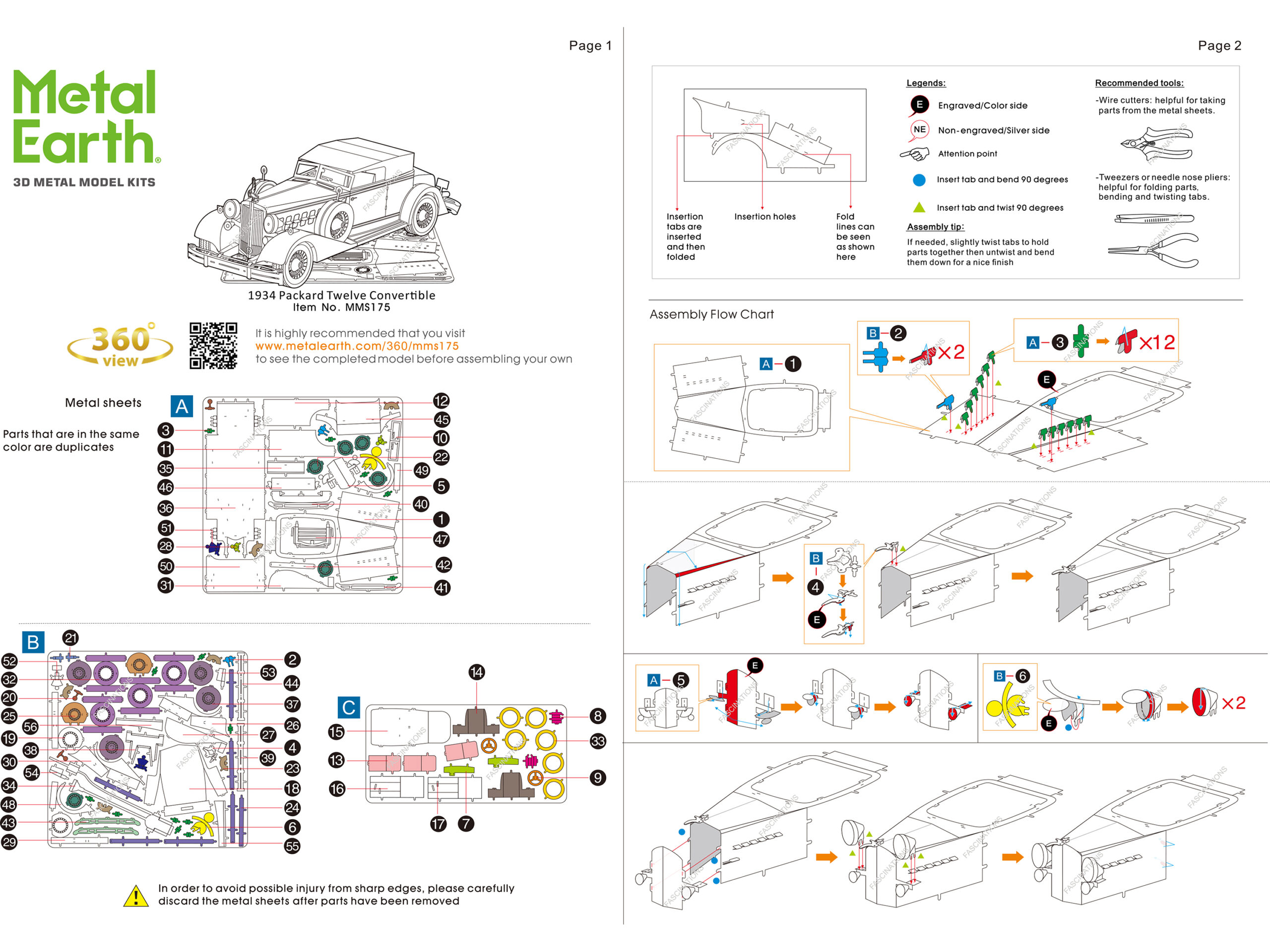 - Brand new 1934 Packard Twelve Convertible Red with Tan Soft Top (Moderate Difficulty) Steel Model Kit by Metal Earth.