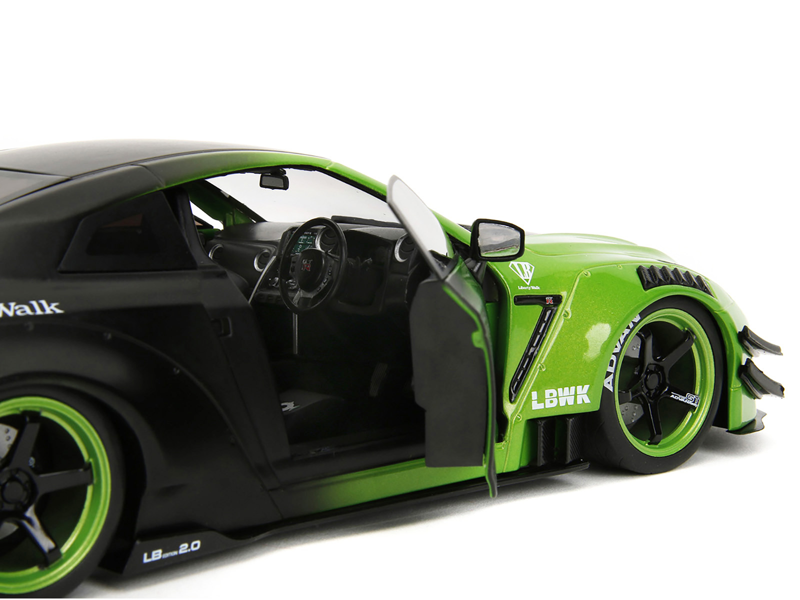 - Brand new 1/18 scale diecast car model of Nissan GT-R (R35) Liberty Walk Body Kit 2.0 RHD (Right Hand Drive) Green and Matt Black “Pink Slips” Series die cast model car by Jada.