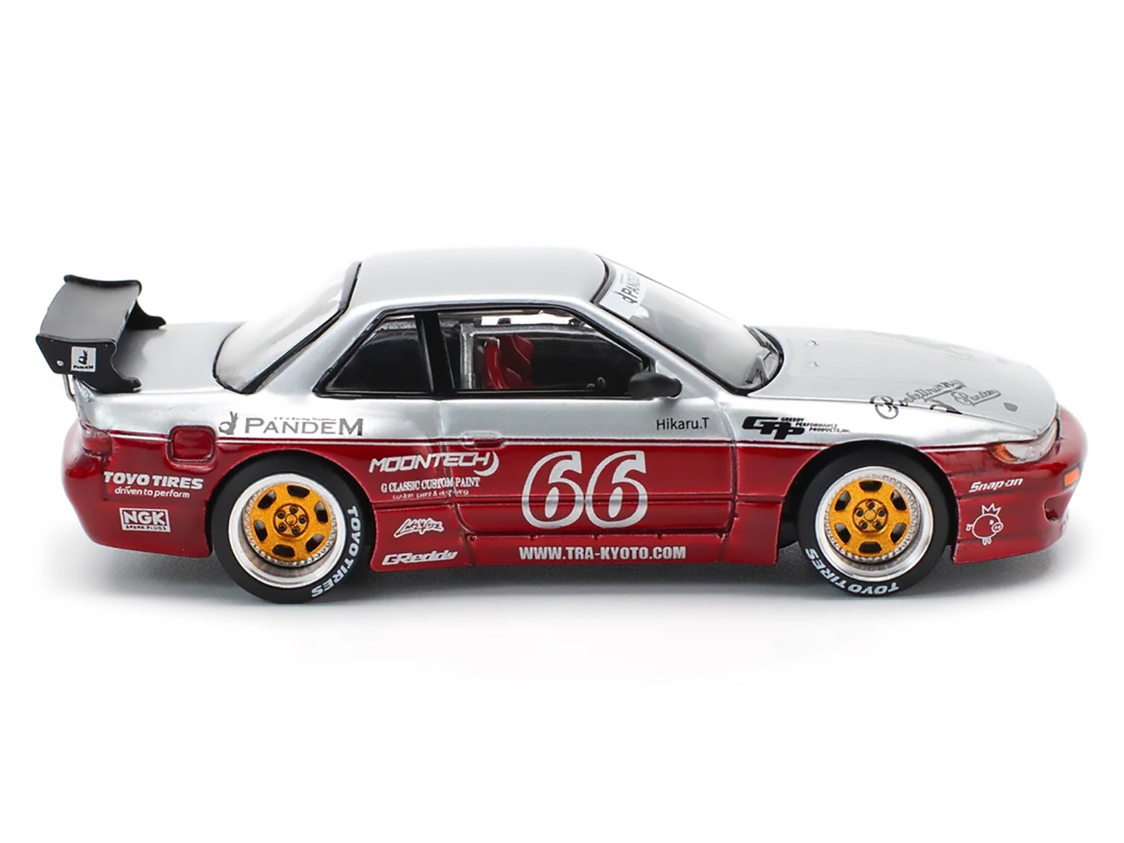 - Brand new 1/64 scale diecast car model of Nissan Pandem S13 RHD (Right Hand Drive) #66 “Moontech” Silver and Red Metallic die cast model car by Pop Race.