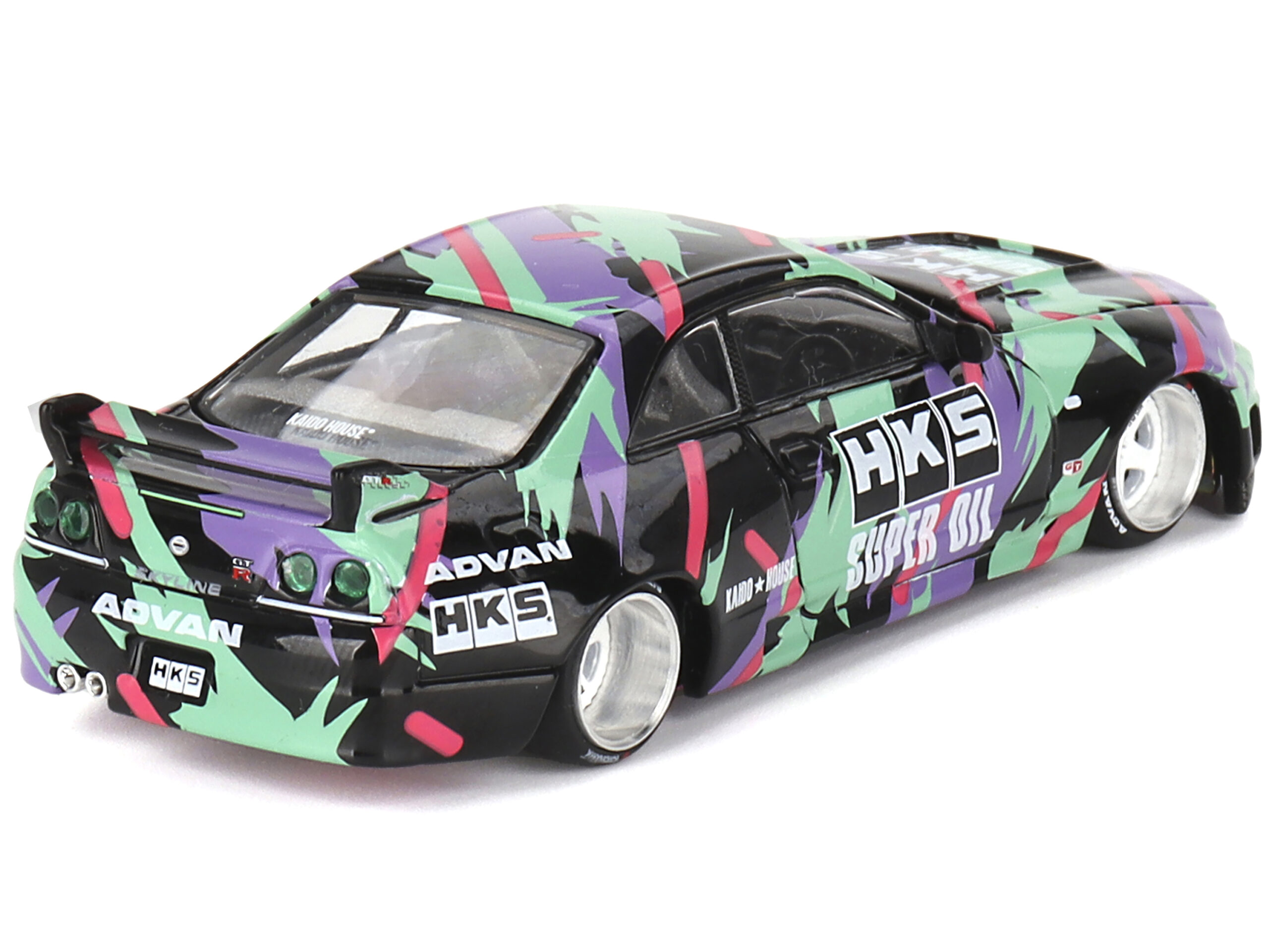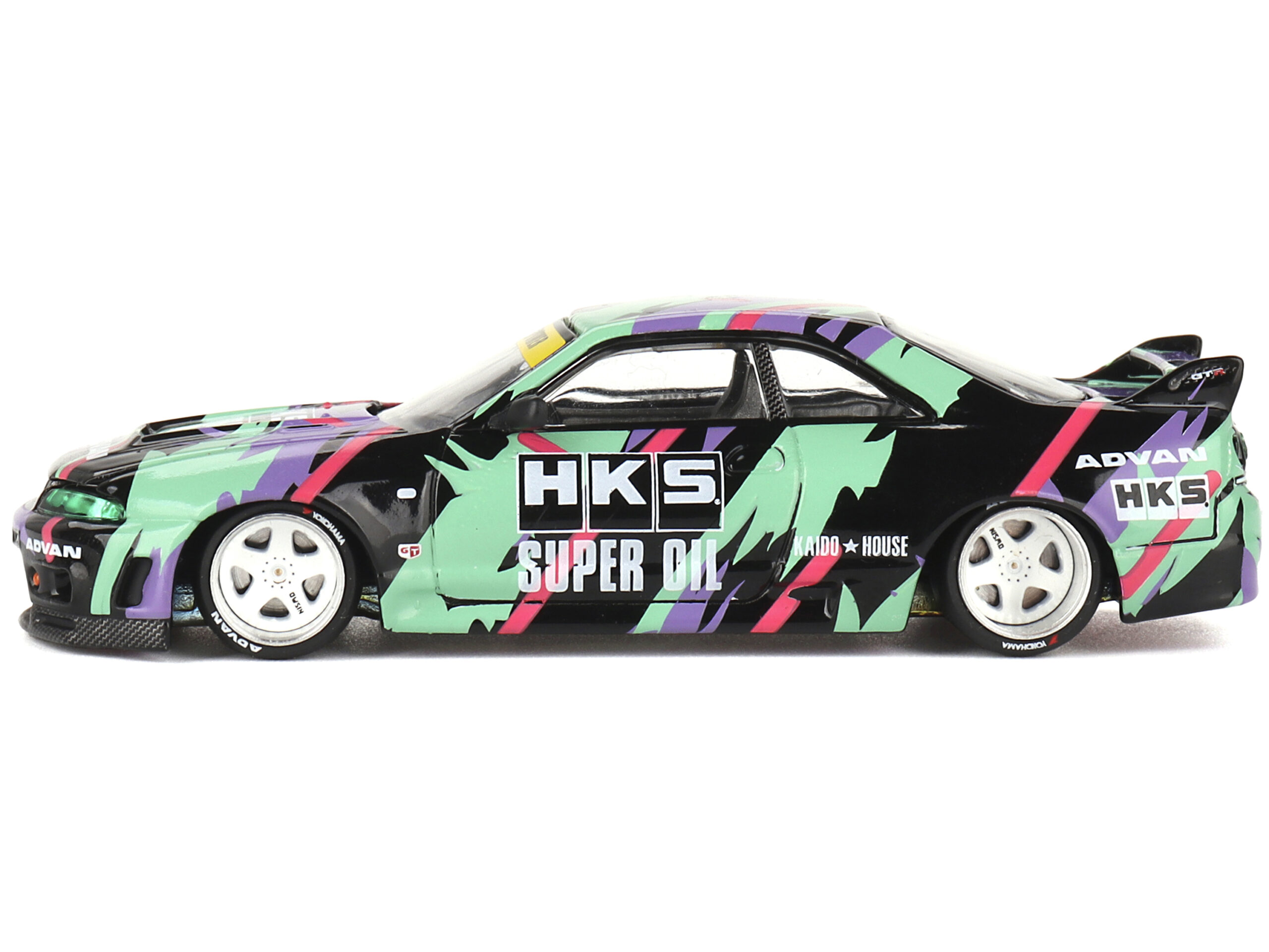 - Brand new 1/64 scale diecast car model of Nissan Skyline GT-R (R33) “HKS V1” RHD (Right Hand Drive) Black with Graphics (Designed by Jun Imai) “Kaido House” Special die cast model car by Mini GT.