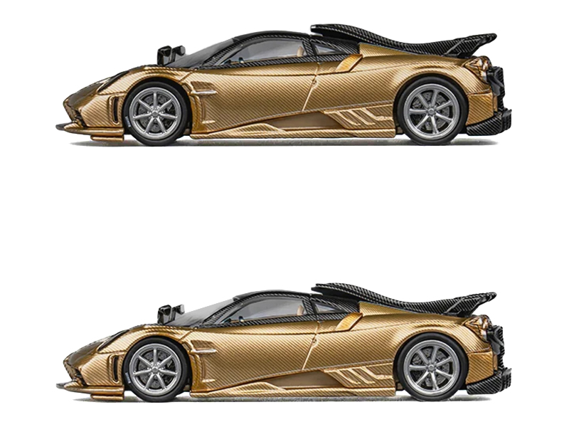 - Brand new 1/64 scale diecast car model of Pagani Imola Gold Carbon Metallic with Black Carbon Top with Extra Wheels die cast model car by CM Model.