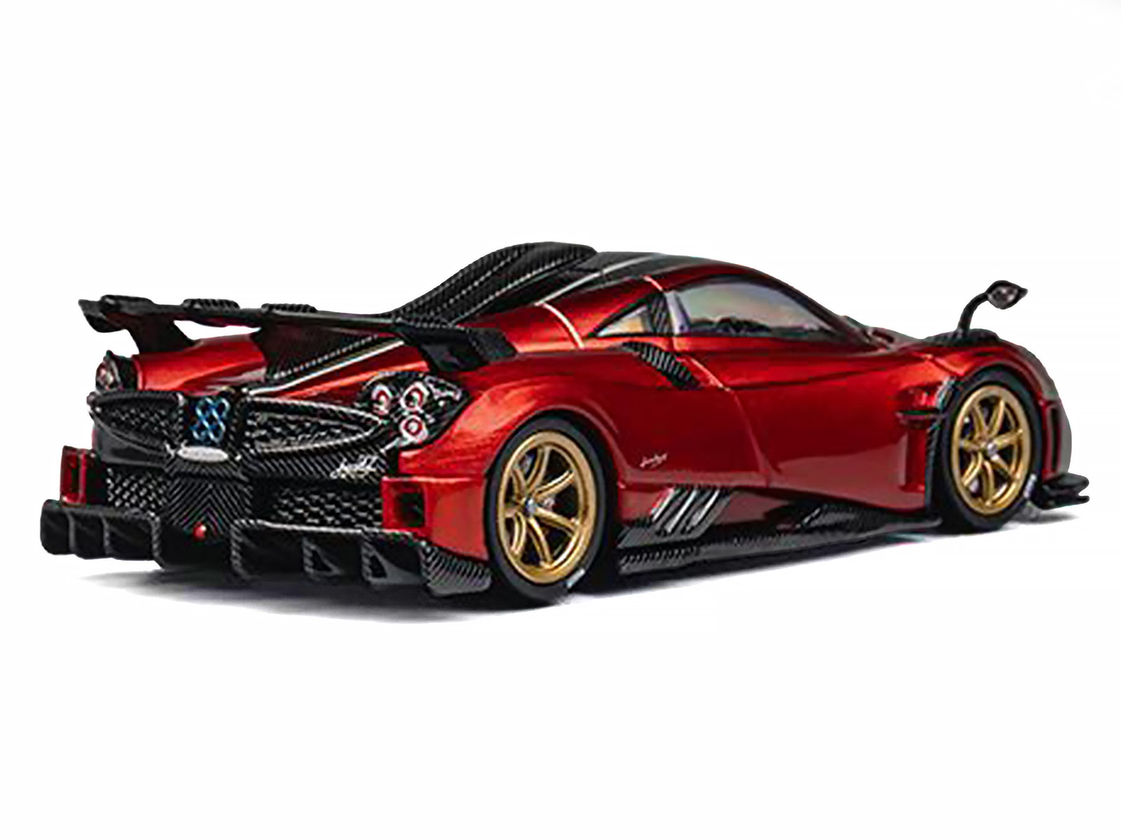 - Brand new 1/64 scale diecast car model of Pagani Imola Red Metallic with Carbon Top and Stripes with Extra Wheels die cast model car by CM Model.