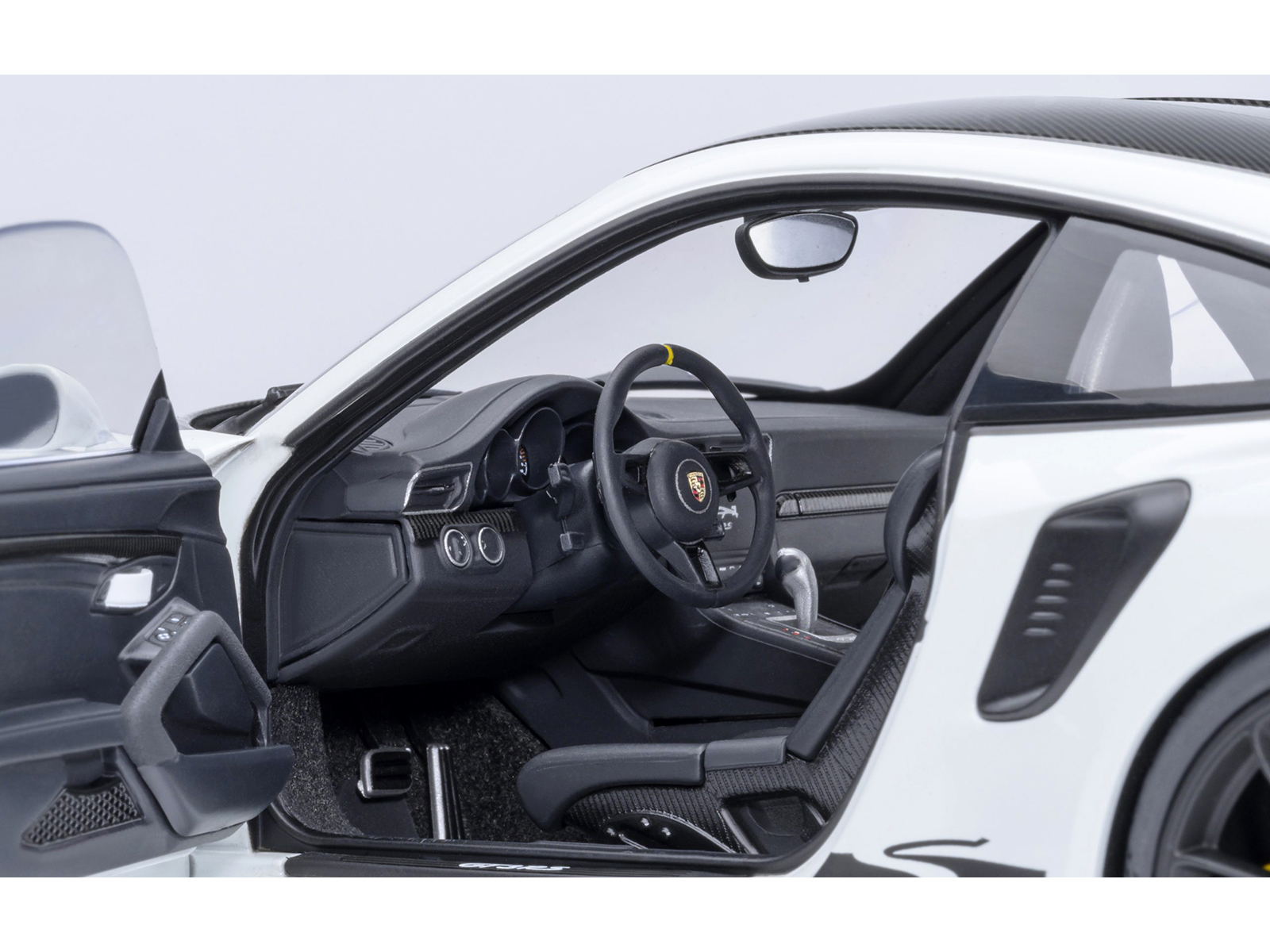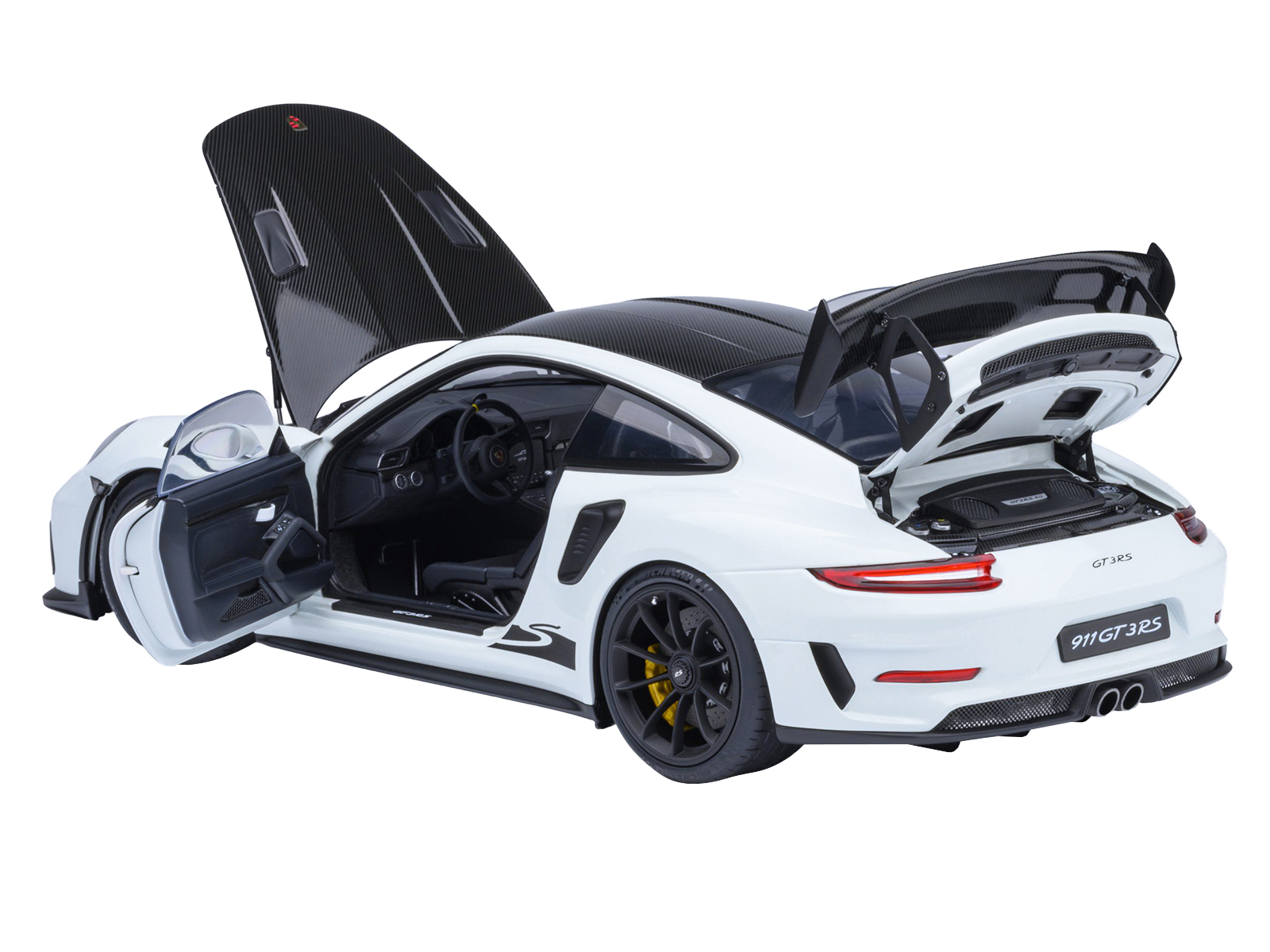 - Brand new 1/18 scale car model of Porsche 911 (991.2) GT3 RS Weissach Package White with Carbon Hood and Top model car by Autoart.