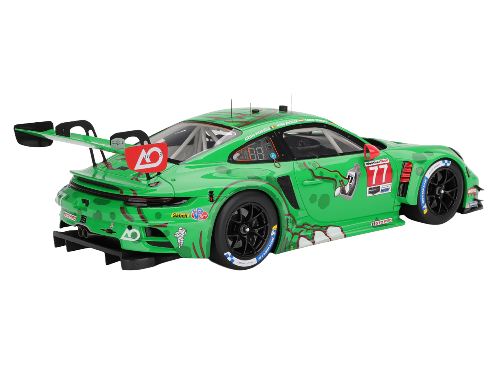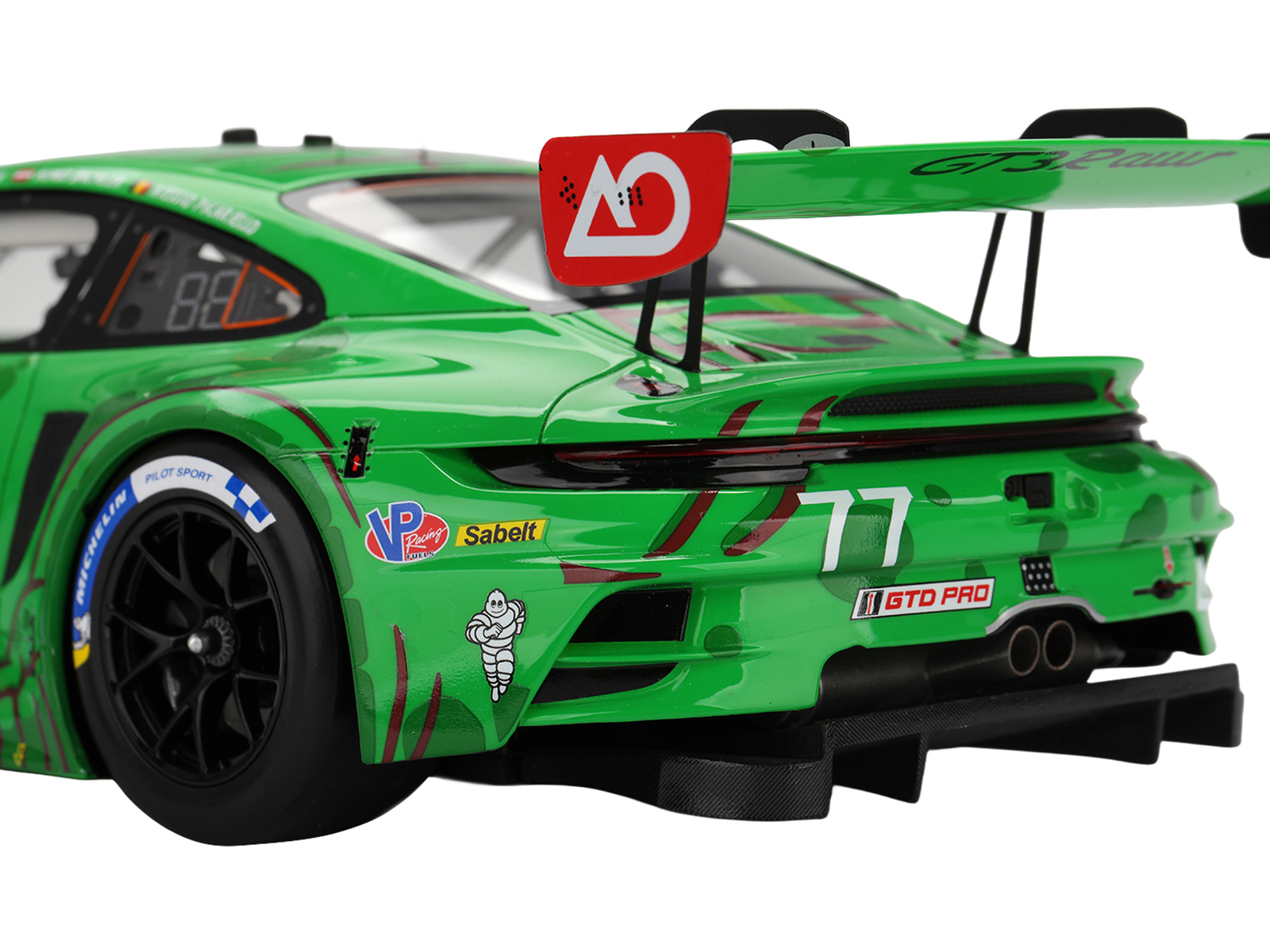 - Brand new 1/18 scale car model of Porsche 911 GT3 R (992) #77 Klaus Bachler – Laurin Heinrich – Alessio Picariello “AO Racing – Rexy” GTD Pro Class Winner IMSA “12 Hours of Sebring” (2025) model car by Top Speed.