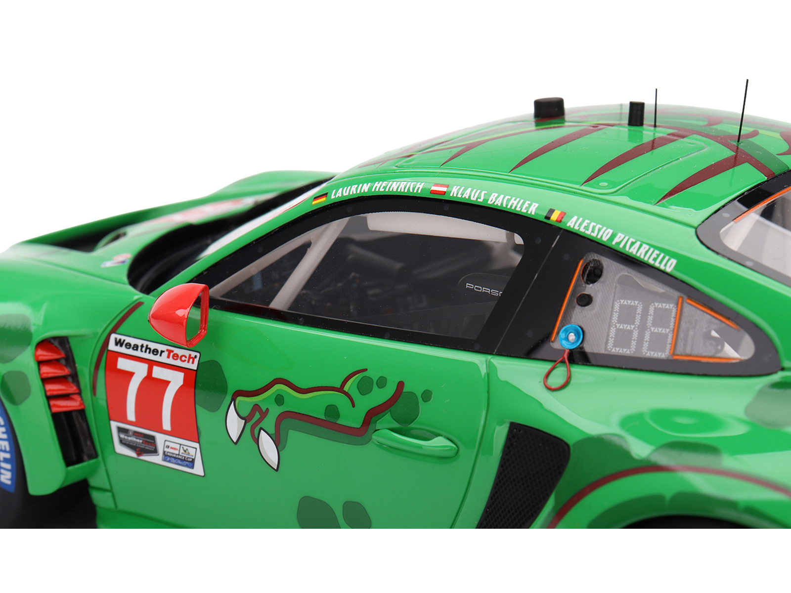 - Brand new 1/18 scale car model of Porsche 911 GT3 R (992) #77 Klaus Bachler – Laurin Heinrich – Alessio Picariello “AO Racing – Rexy” IMSA “24 Hours of Daytona” (2025) model car by Top Speed.